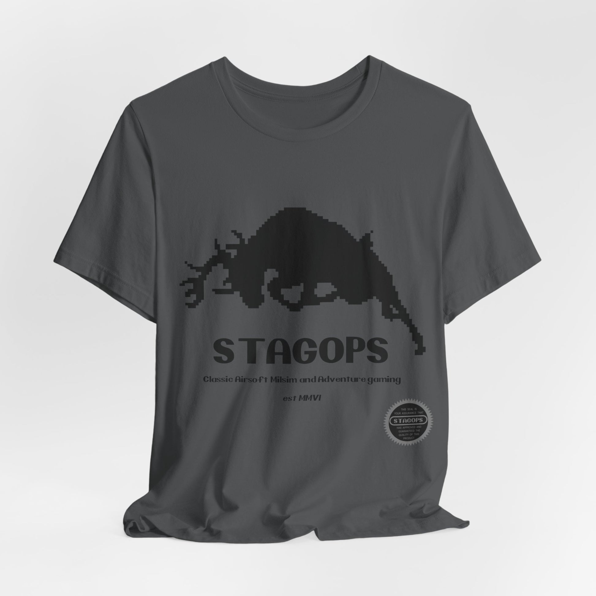 Celebrate our 18th year by grooving to the future of yesteryear, with this 8-bit era inspired tee available in both faction-uniform and casual colorways for your game day, range day, or just everyday wear.