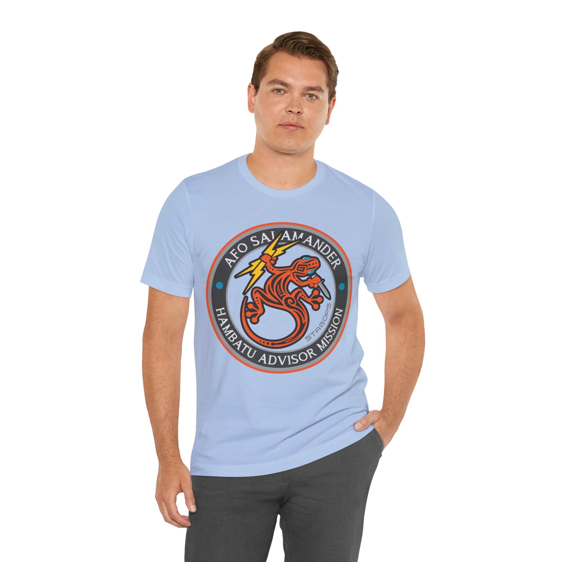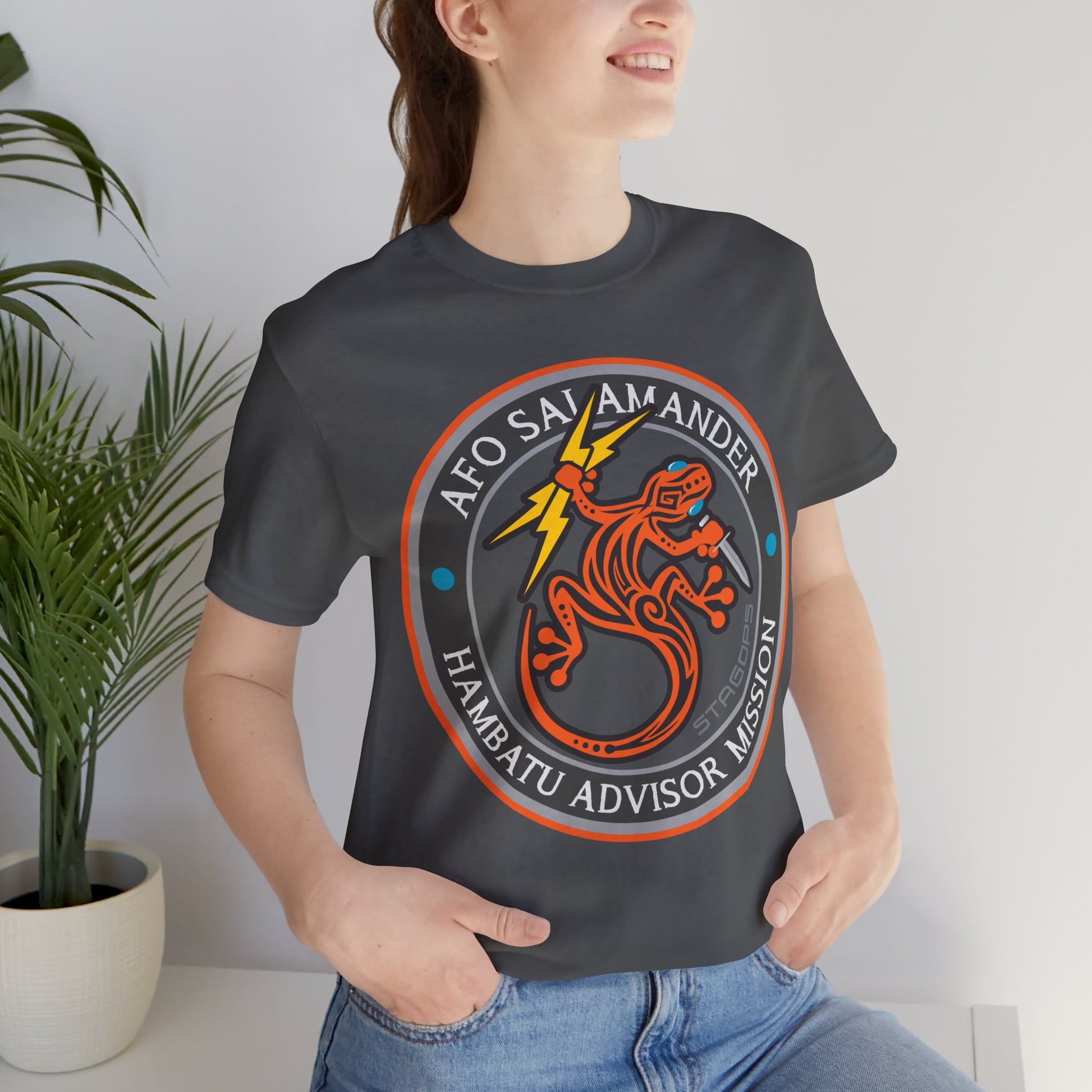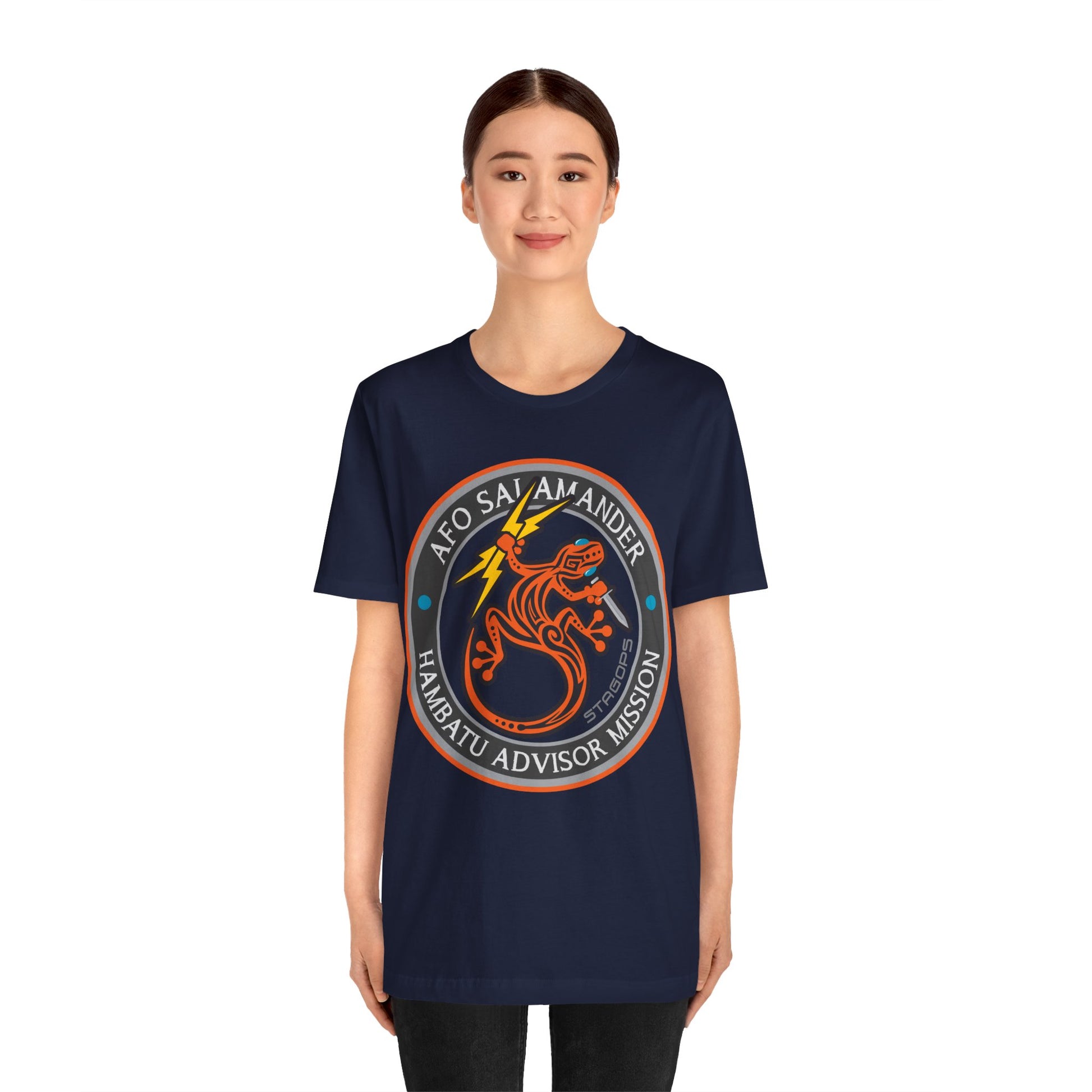 FOR SURVIVORS OF THE MIDSUMMER NIGHTMARE SERIES- Advance Force Operations Unit- SALAMANDER, are the SME/SMU/INTEL and Civilian enabler unit for JTF-SHEPHERD shooters during the Hambatu Advisor mission set of the Midsummer Nightmare series. This comfy tee is available in both faction correct, and casual colorways.