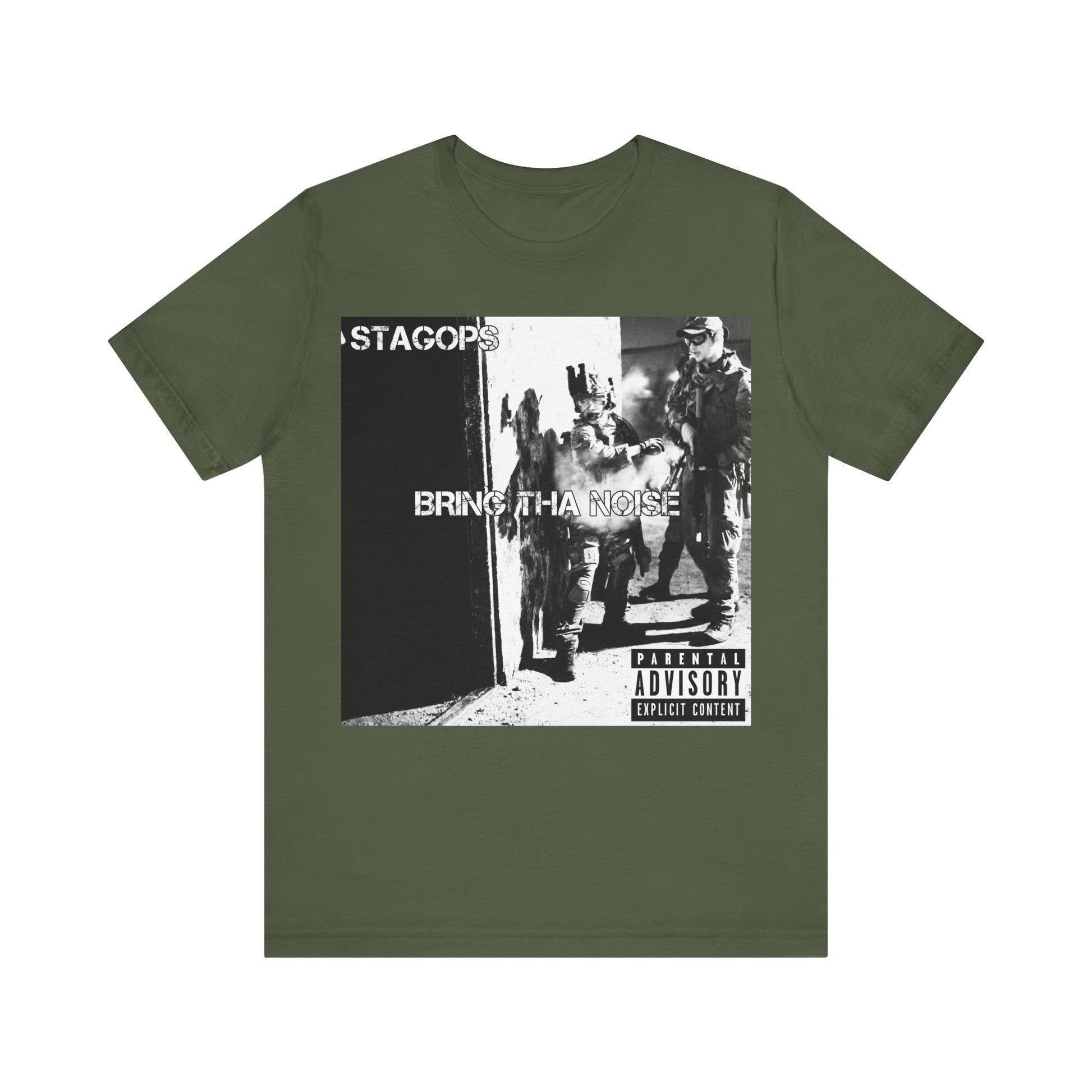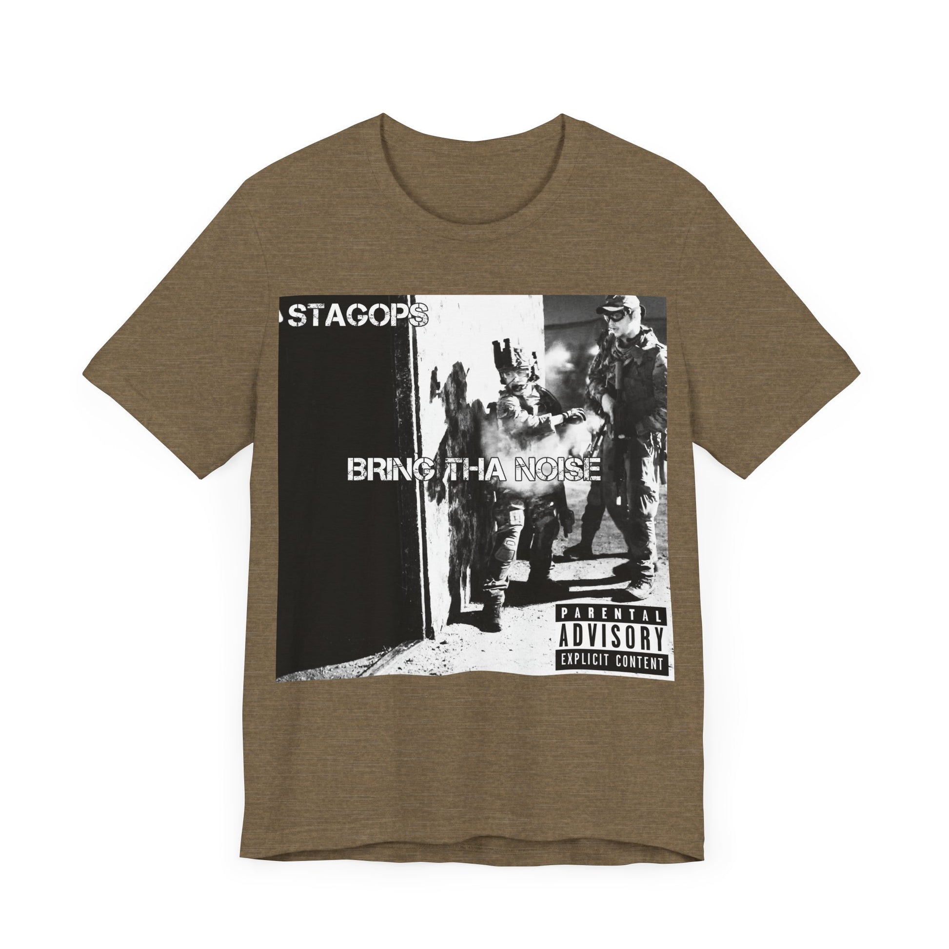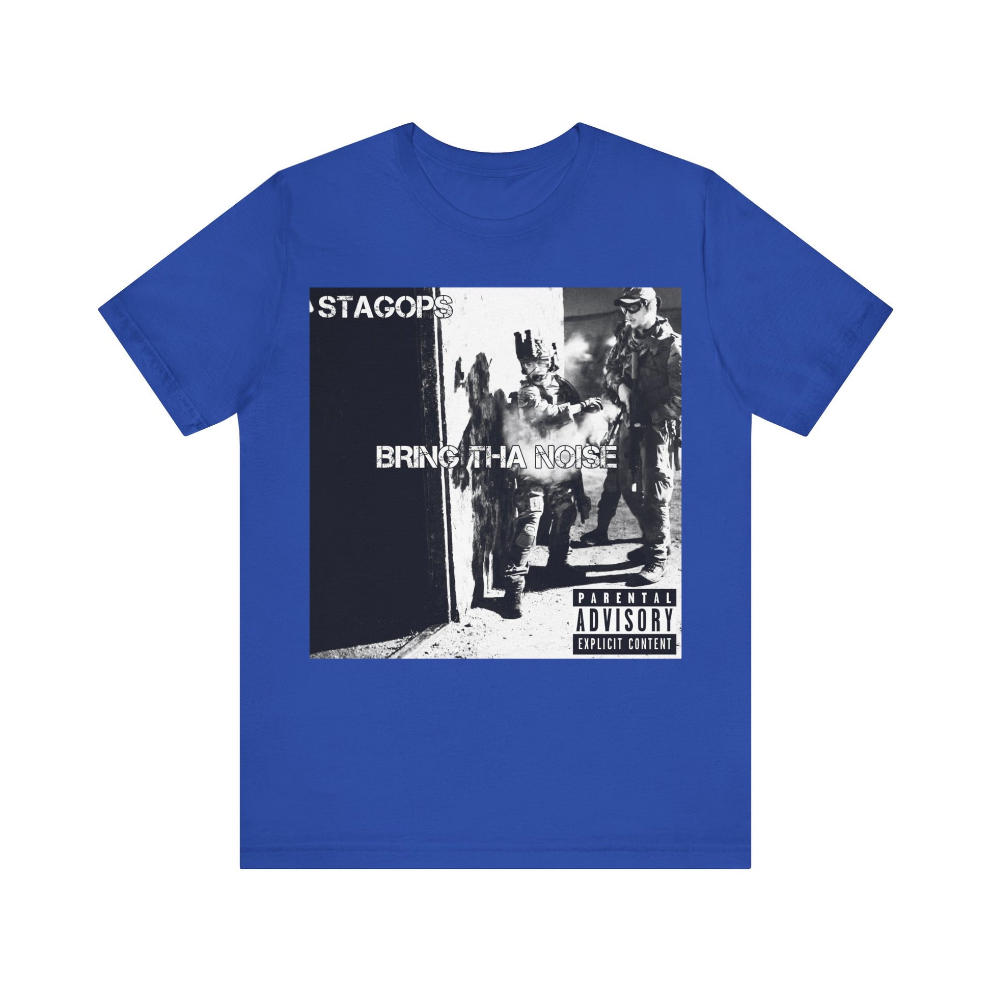 An homage to the scrappy DIY rap, grunge, and rock album covers and demos from the 90s... BRING THA NOISE in a comfy tee- available in both faction correct, and casual colorways.