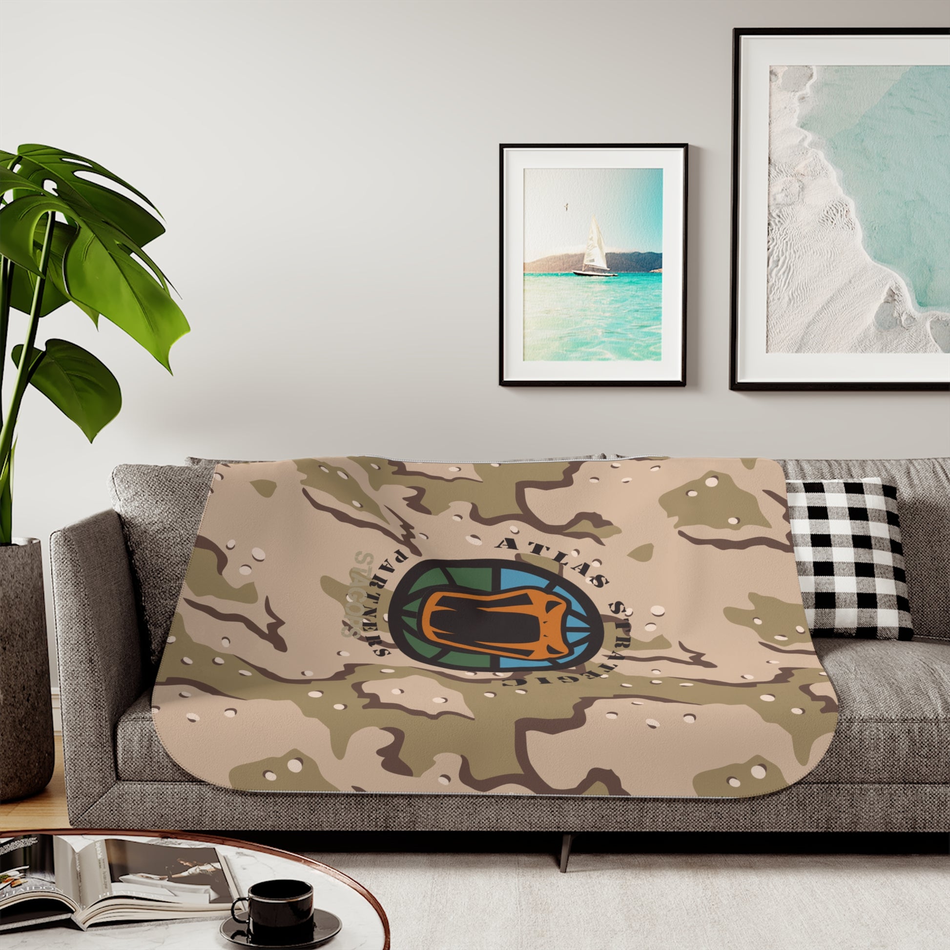 This snuggly sherpa photo blanket is great for the Couch, Man Cave/She Shed, car, or FOB and comes in beige and desert camo. This blanket is made with a supremely soft polyester front and a sherpa back, and comes in 30x40 and 50x60 sizes..: 100% Polyester