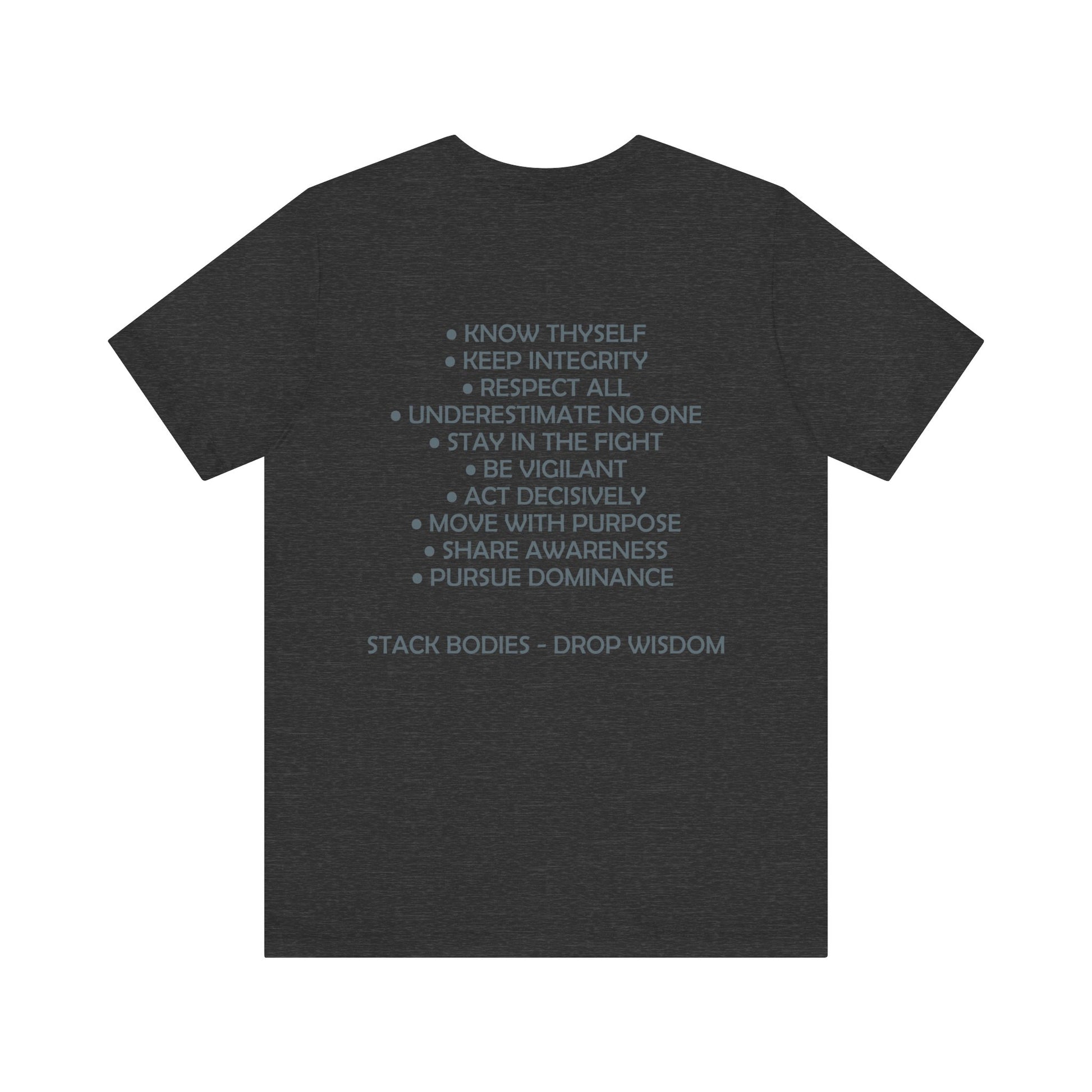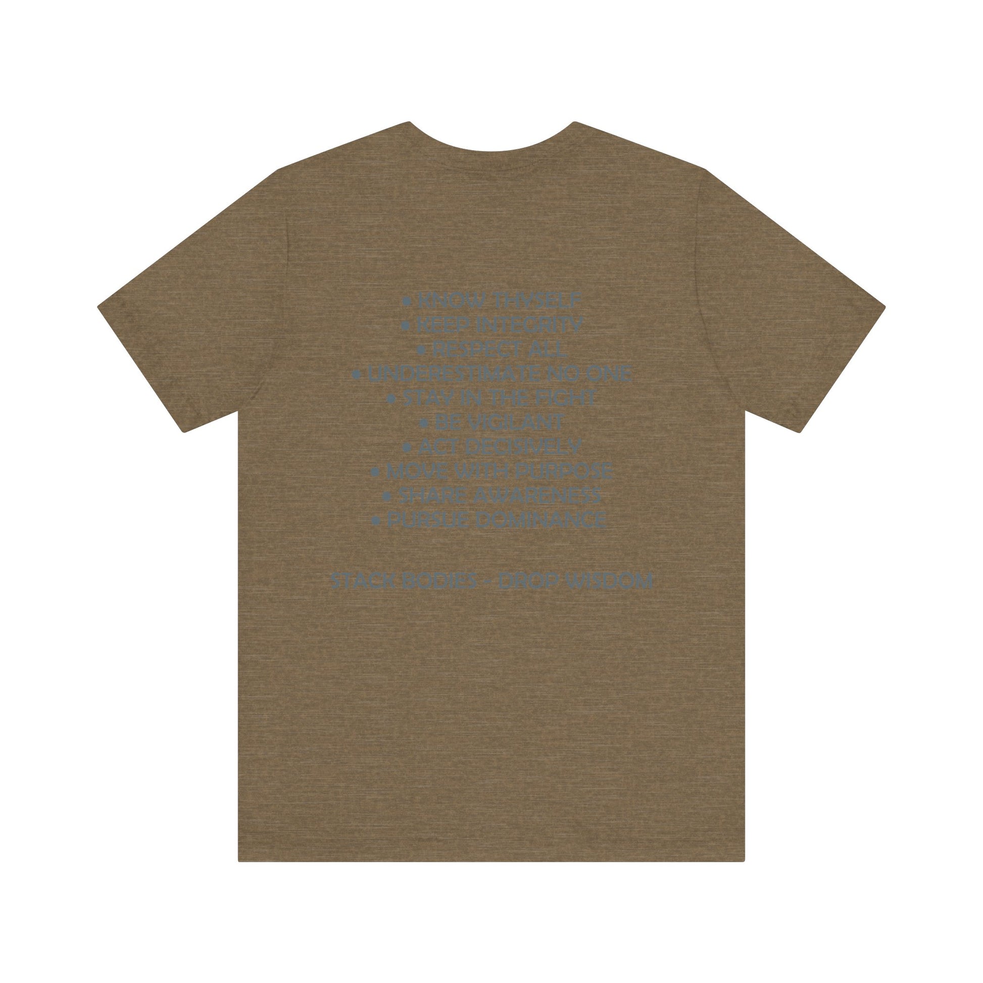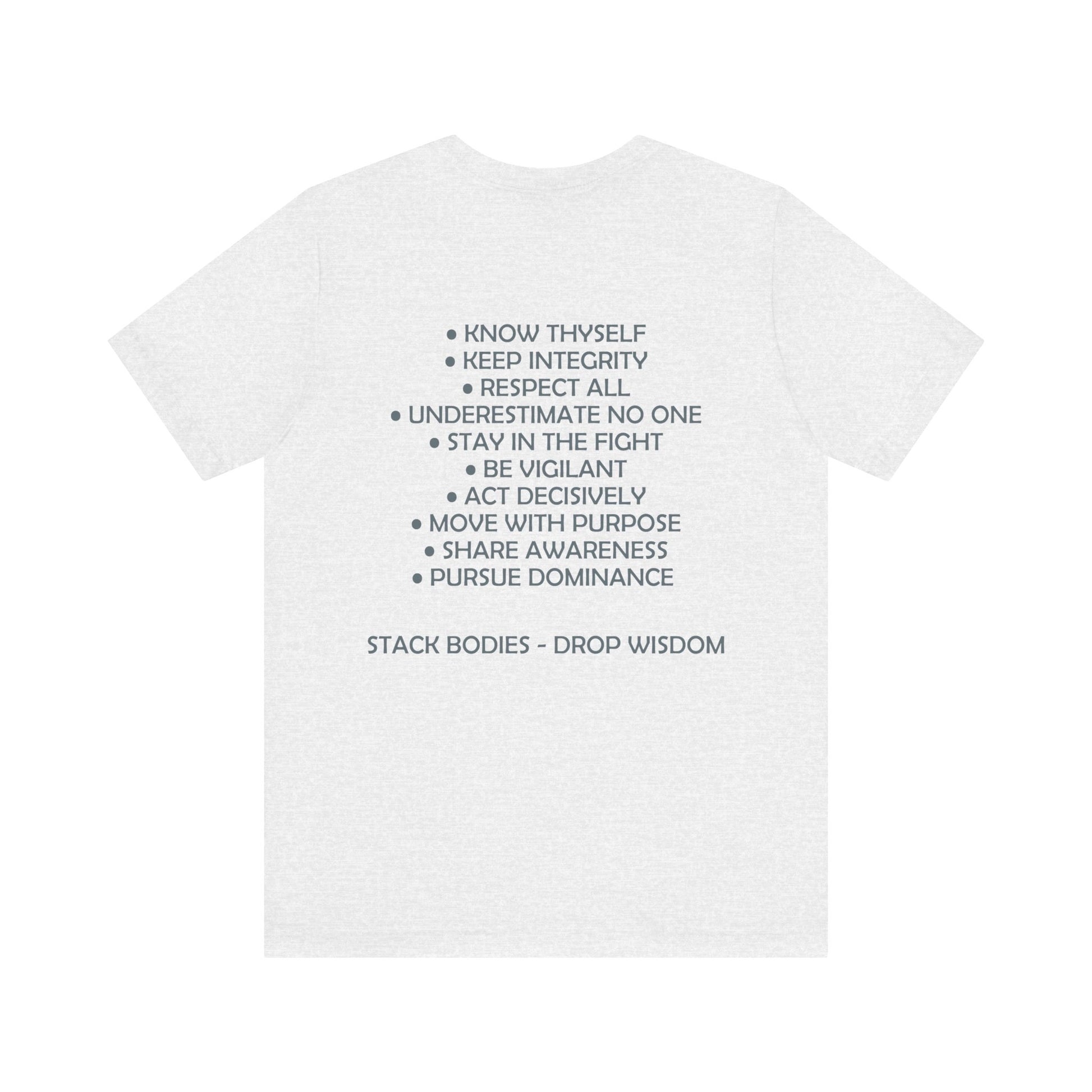 Drop Wisdom, Stack Bodies in style with this double printed guru training mantras tee- available in both faction correct, and casual colorways.