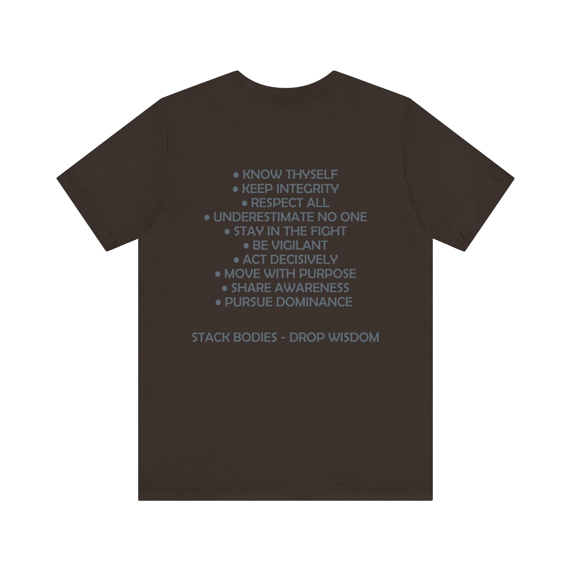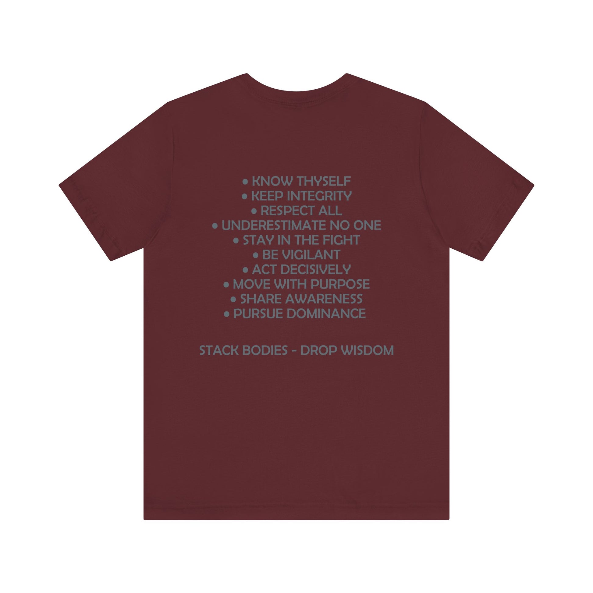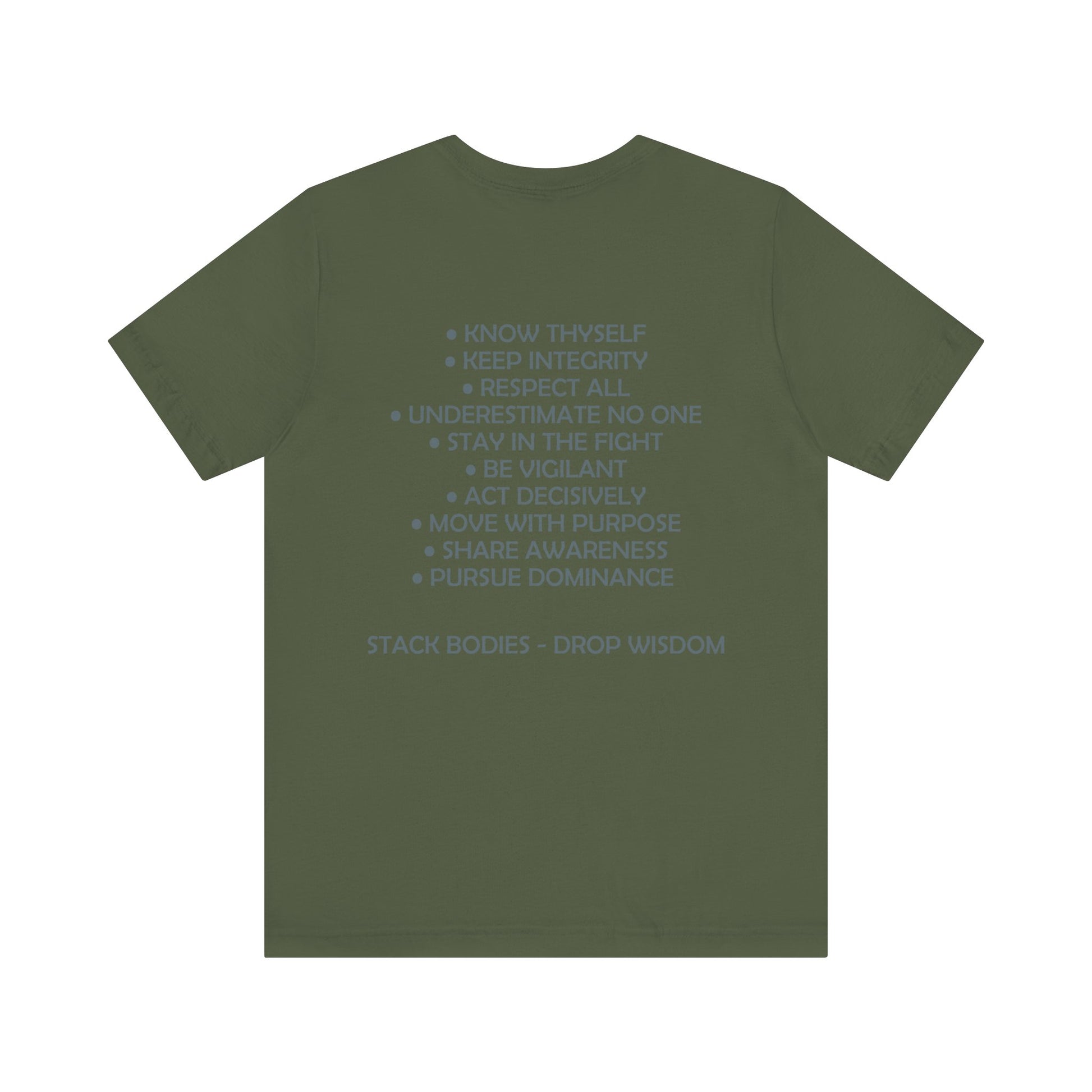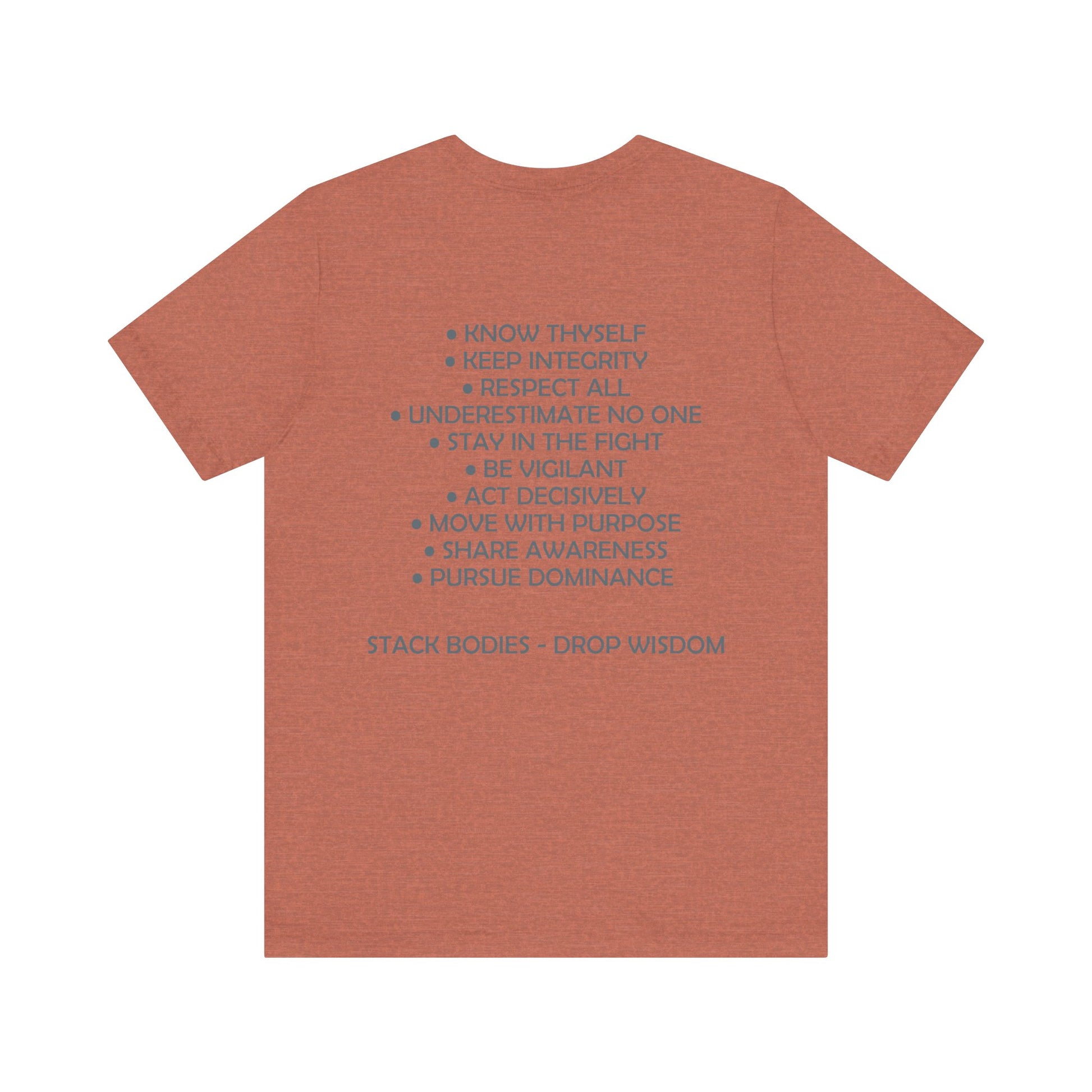 Drop Wisdom, Stack Bodies in style with this double printed guru training mantras tee- available in both faction correct, and casual colorways.