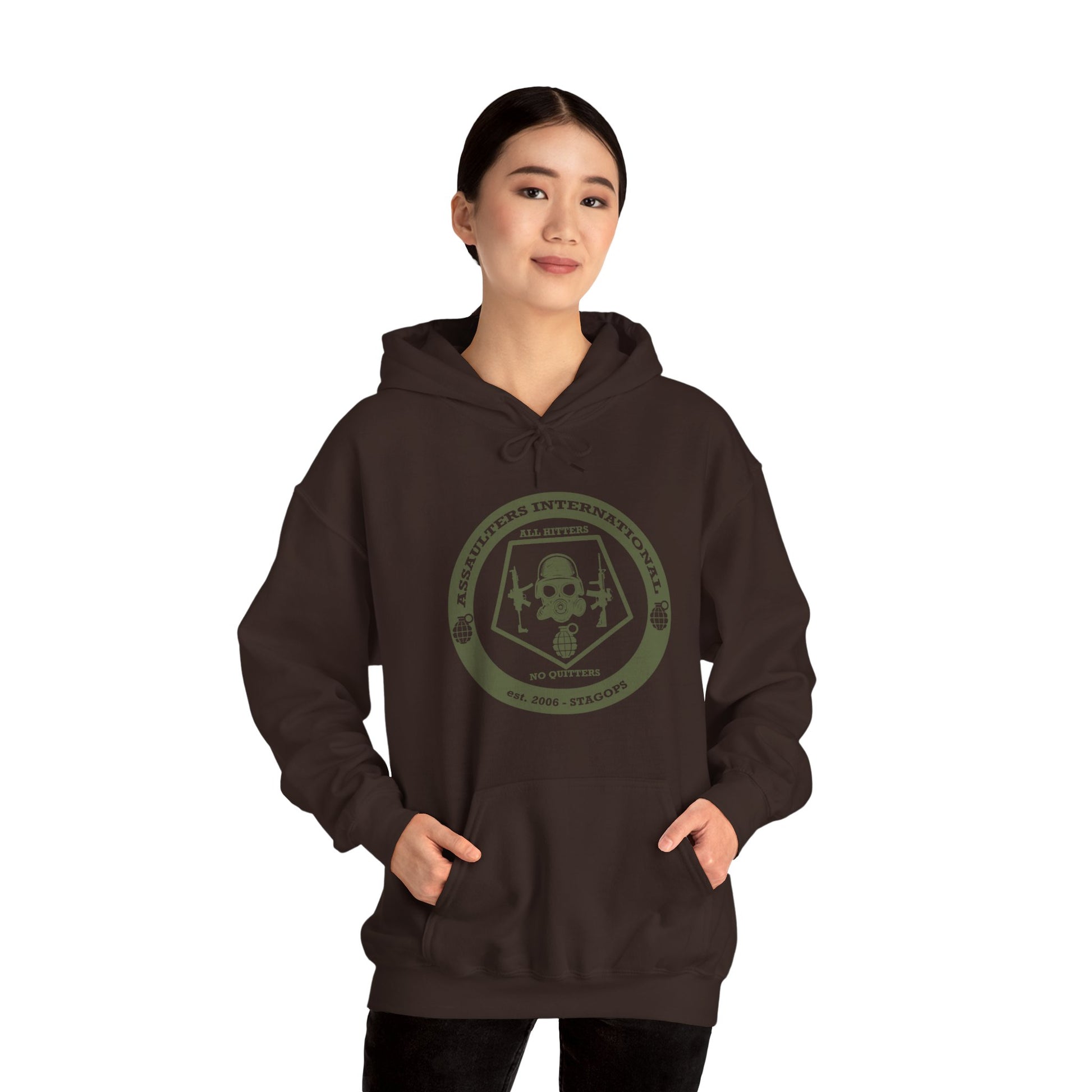 Chill after a hard day or night of All hitter, no Quitter action with this ASSAULT INTERNATIONAL hoodie, available in both faction-uniform and casual colorways for your game day, range day, or just everyday wear.