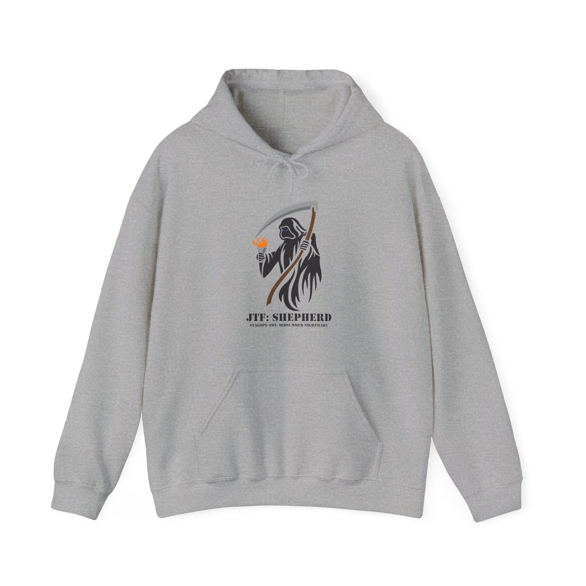 Our most intense events, (Midsummer Nightmare series) draws you into JTF- SHEPHERD, an international Joint Task Force facing a slow burn, psychological roller coaster ride of deep scenario-oriented gameplay in austere conditions. Kick back after a looooong weekend of that jungle-desert-lake-mountaineering life with this hoodie- available in faction uniform and casual colorways