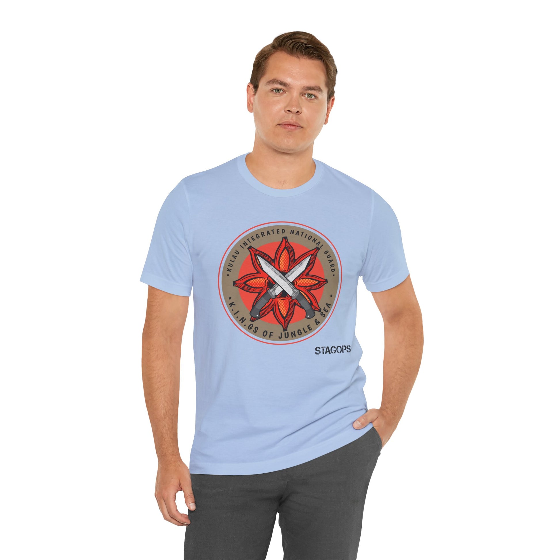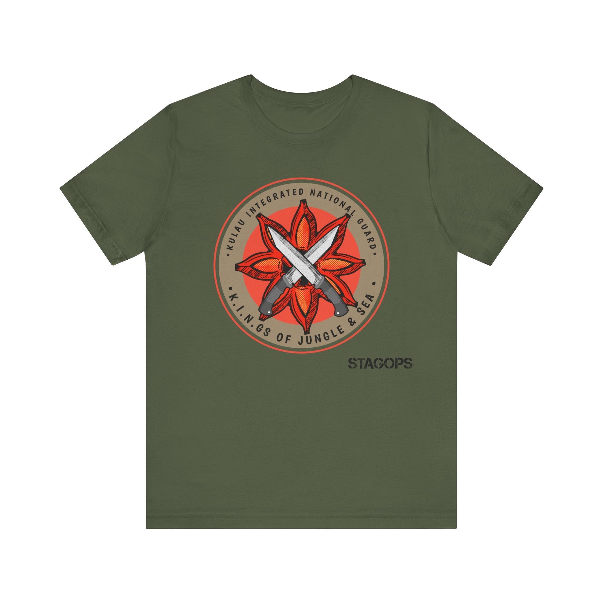 New for Midsummer Nightmare 8, show your solidarity with the beleagured KULAU INTEGRATED NATIONAL GUARD with this "KINGS of Jungle and Sea" in comfort and uniform colors.