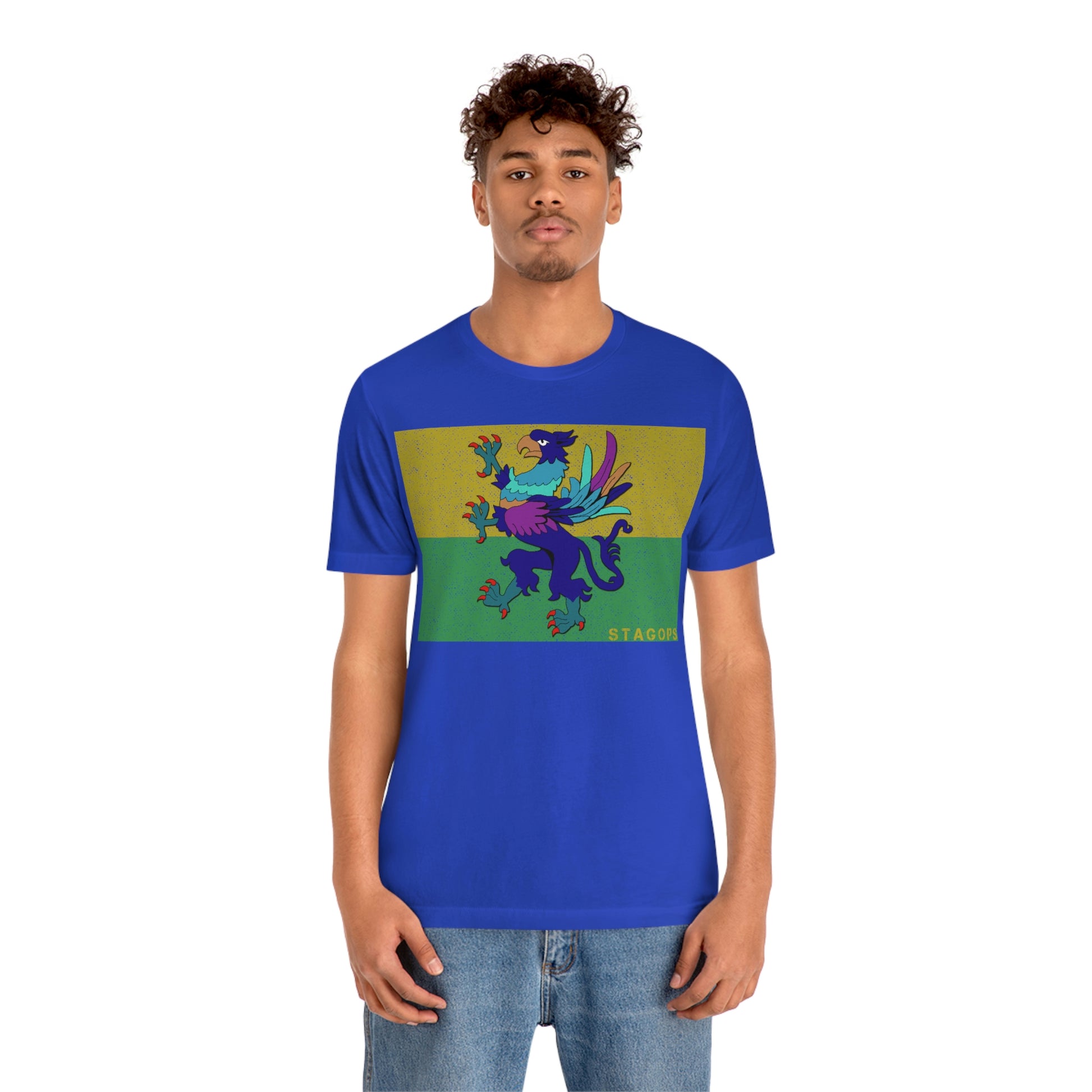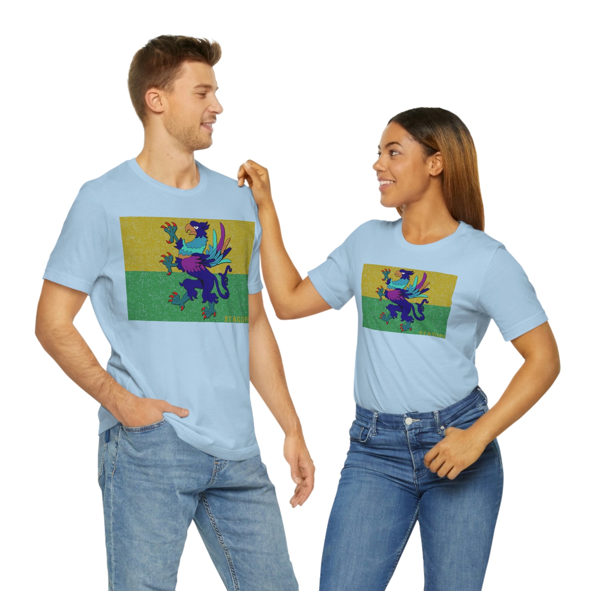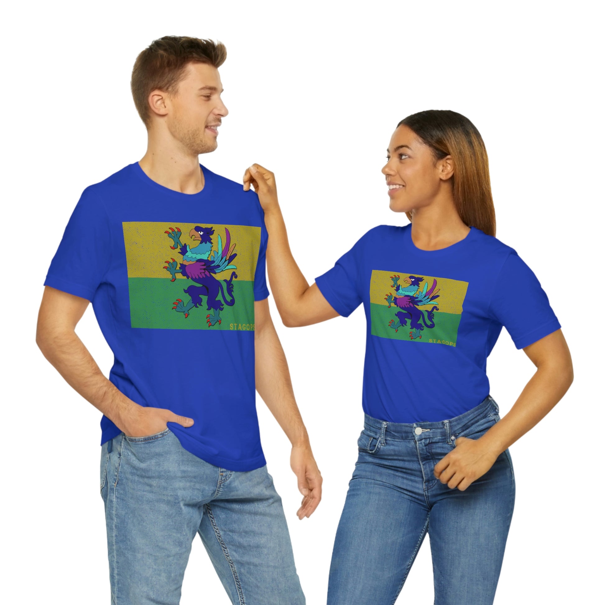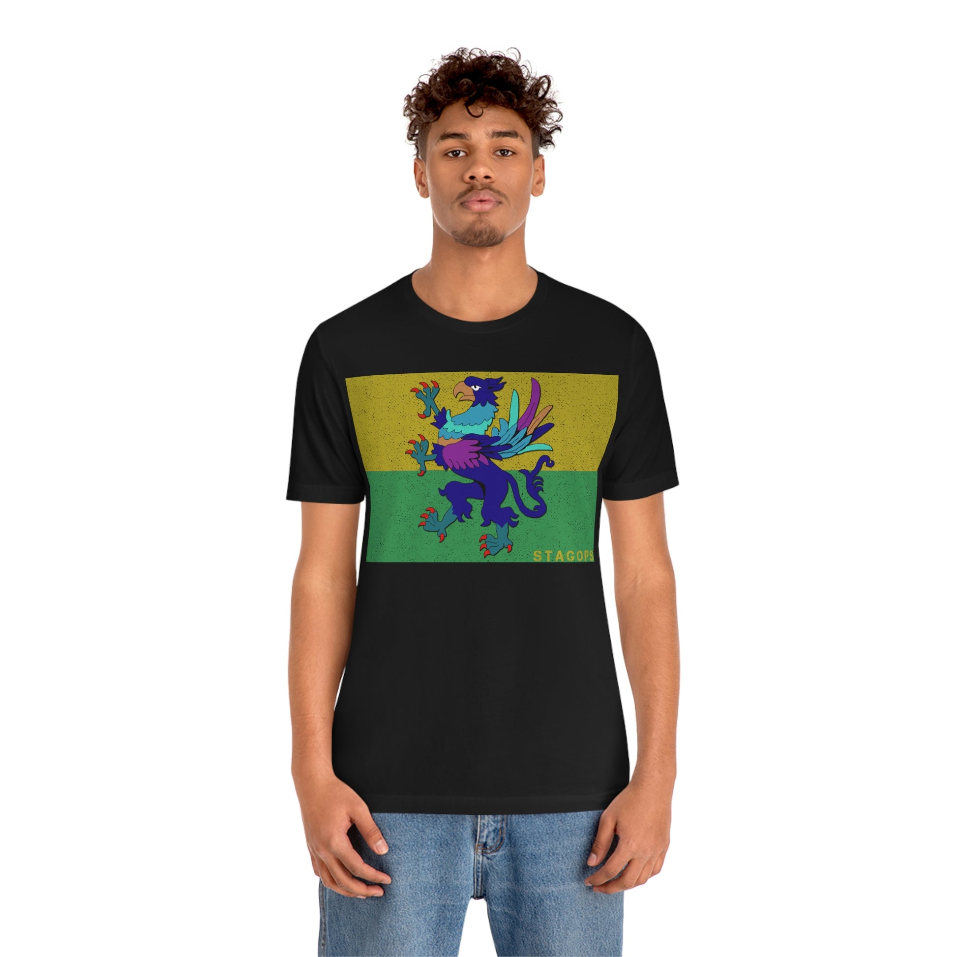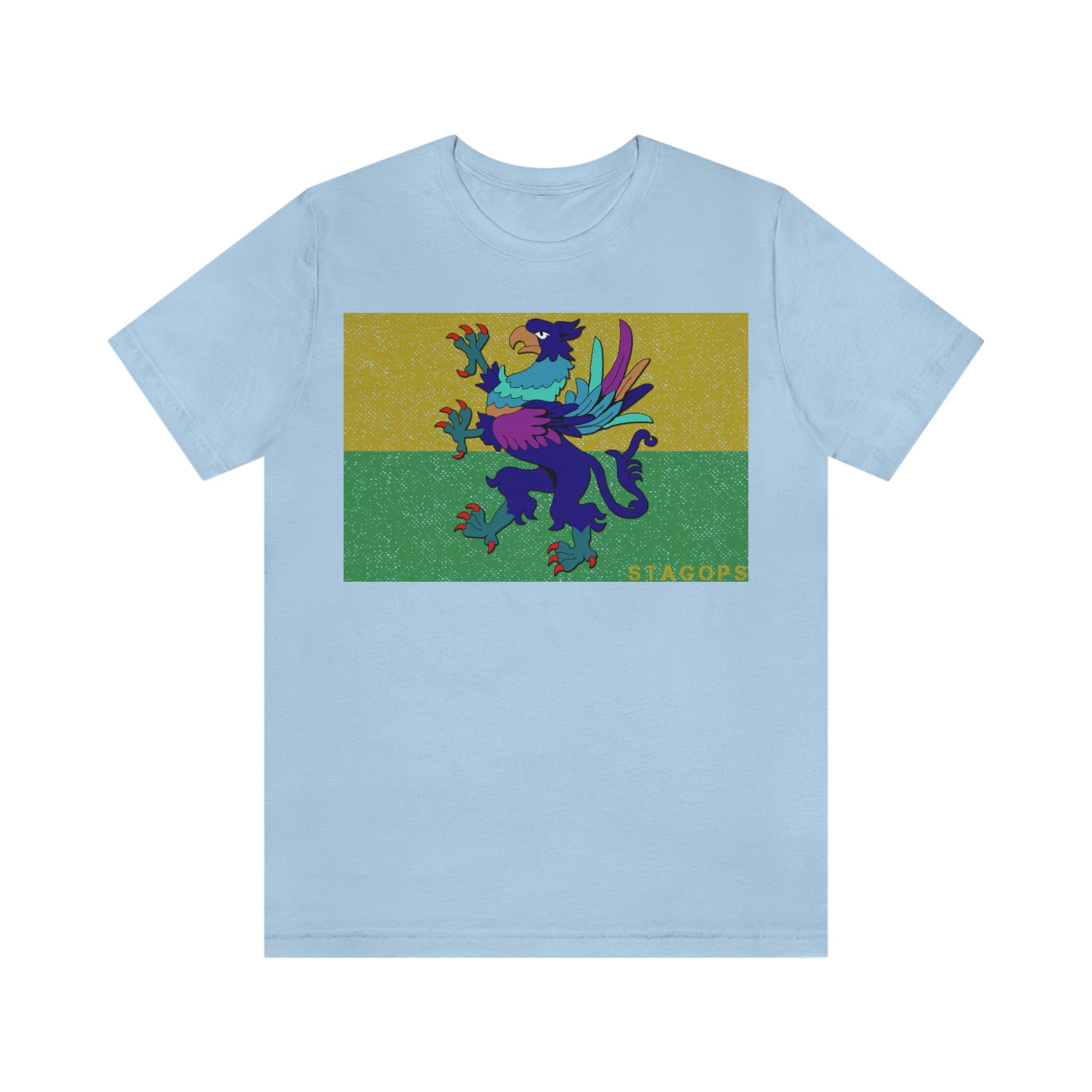 Whether you are committed to defending ancient cultures and ways displaced by colonists, or loyal to the Colonies that modernized the nation of San Petheo, do it in style with this comfy San Petheo flag tee- available in both faction correct, and casual colorways.