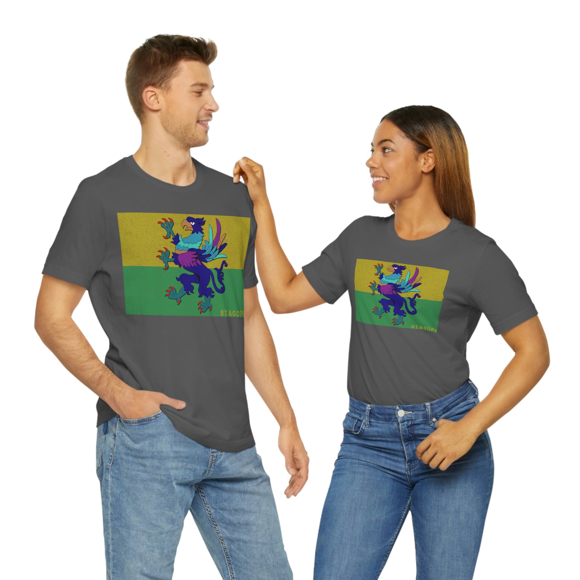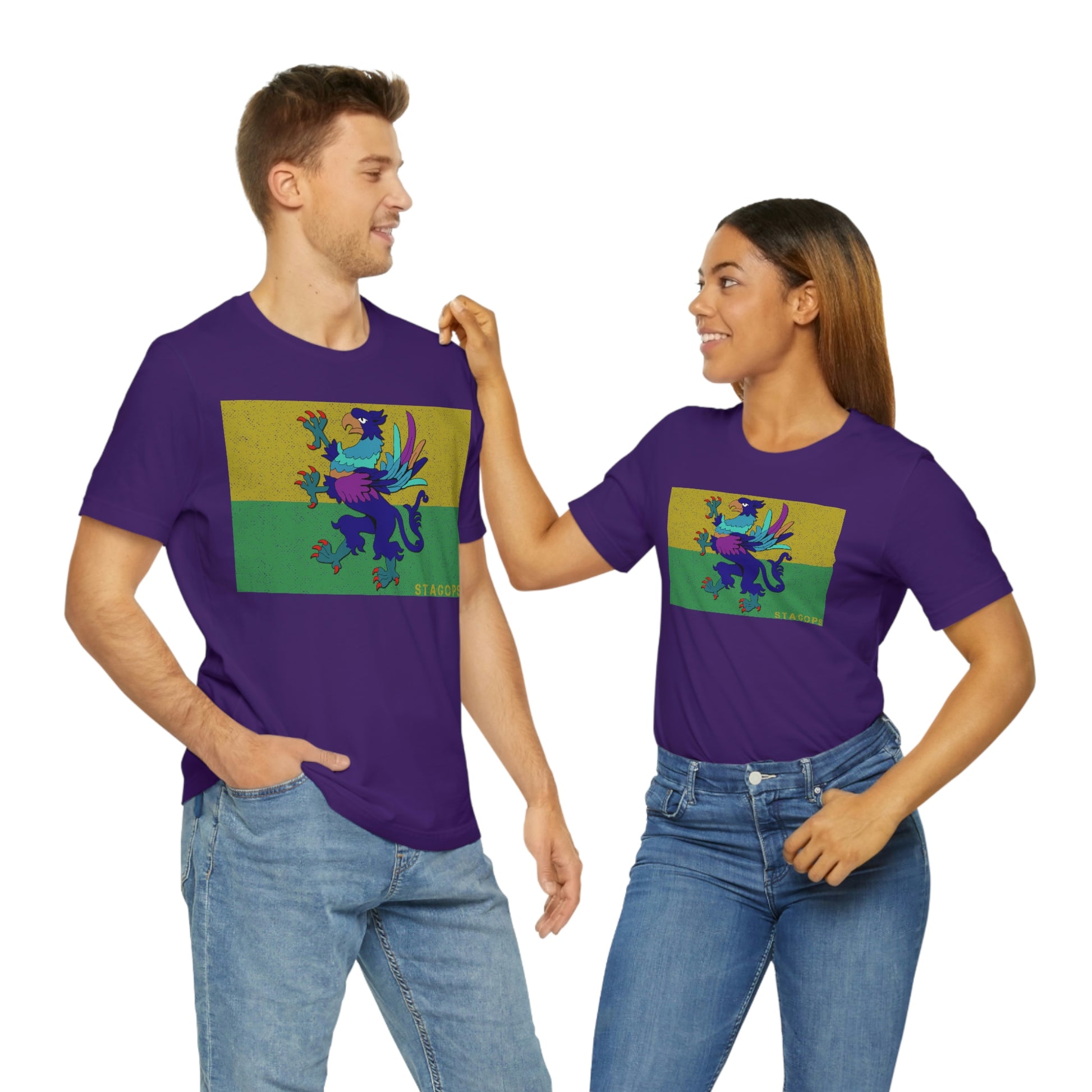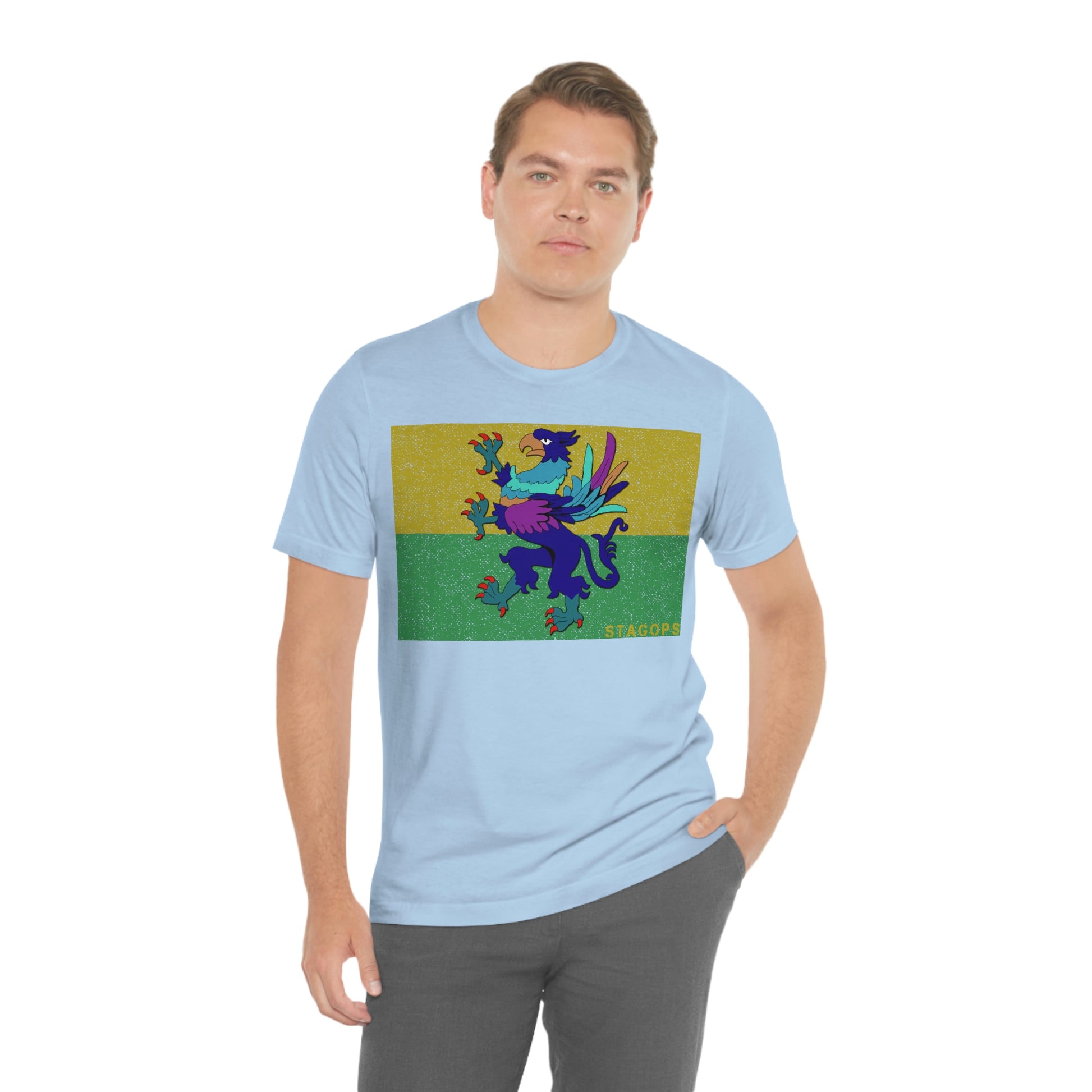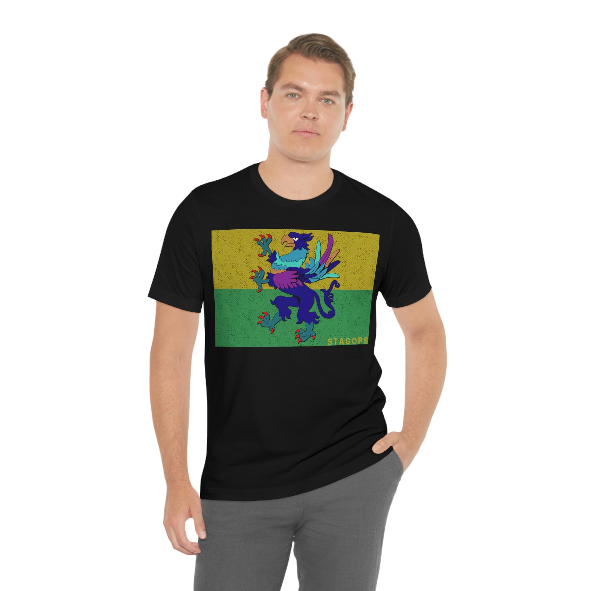 Whether you are committed to defending ancient cultures and ways displaced by colonists, or loyal to the Colonies that modernized the nation of San Petheo, do it in style with this comfy San Petheo flag tee- available in both faction correct, and casual colorways.