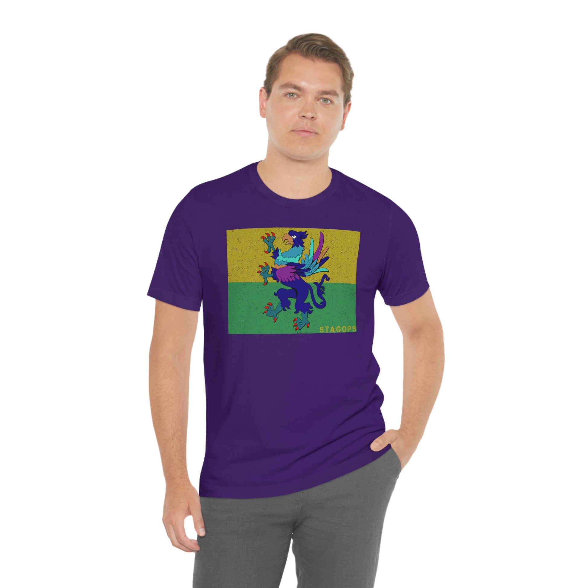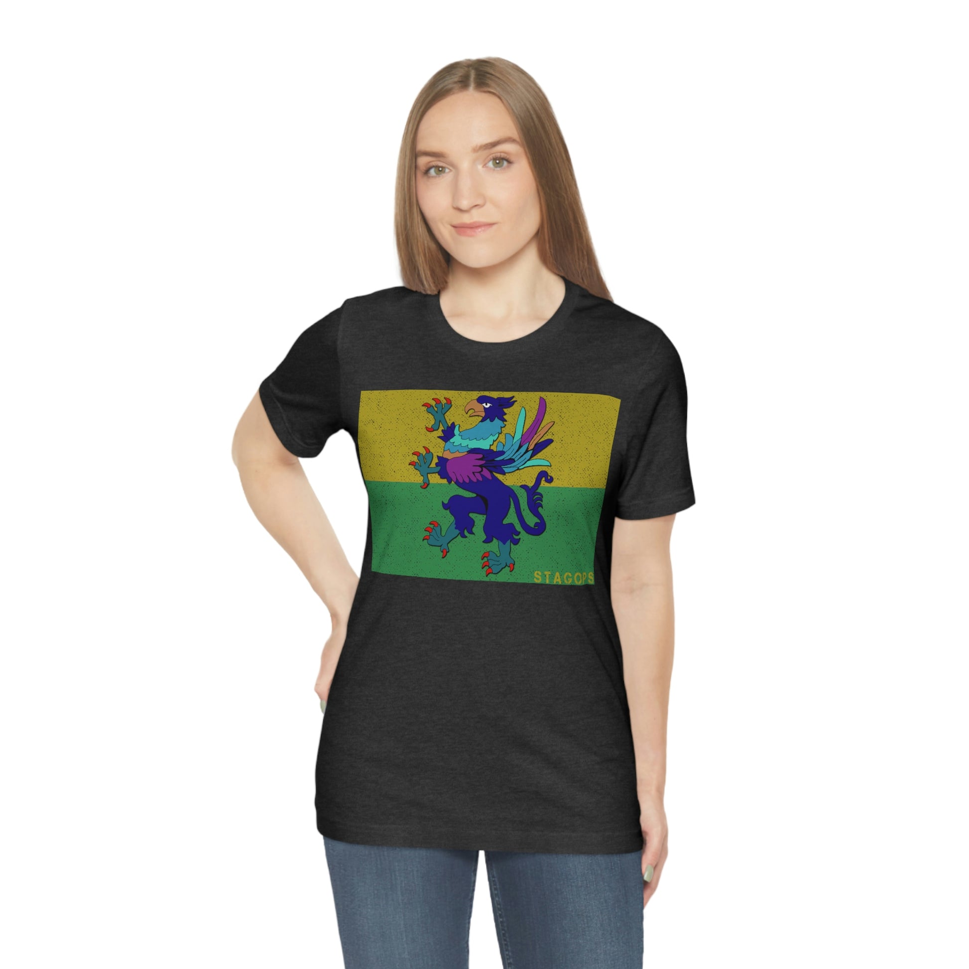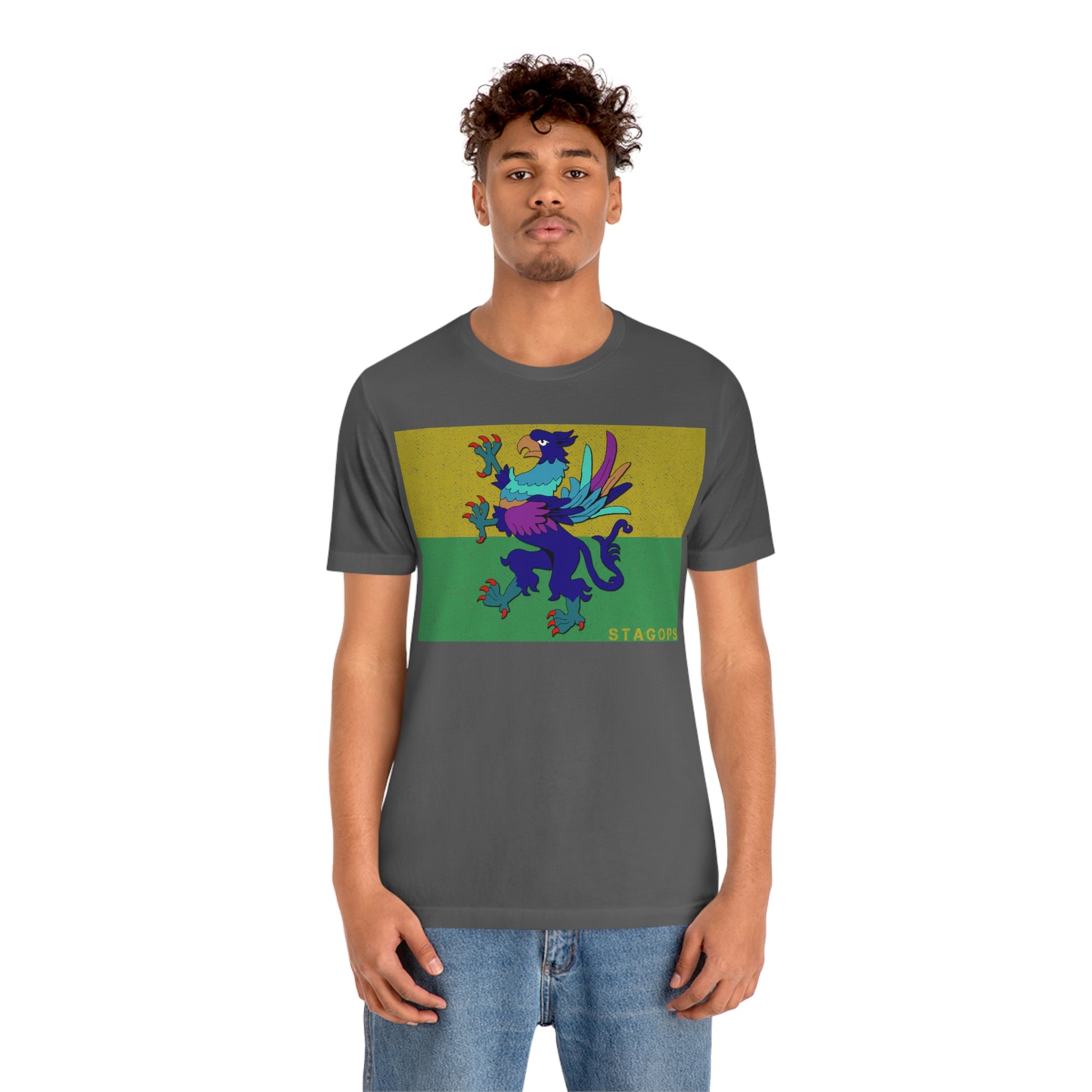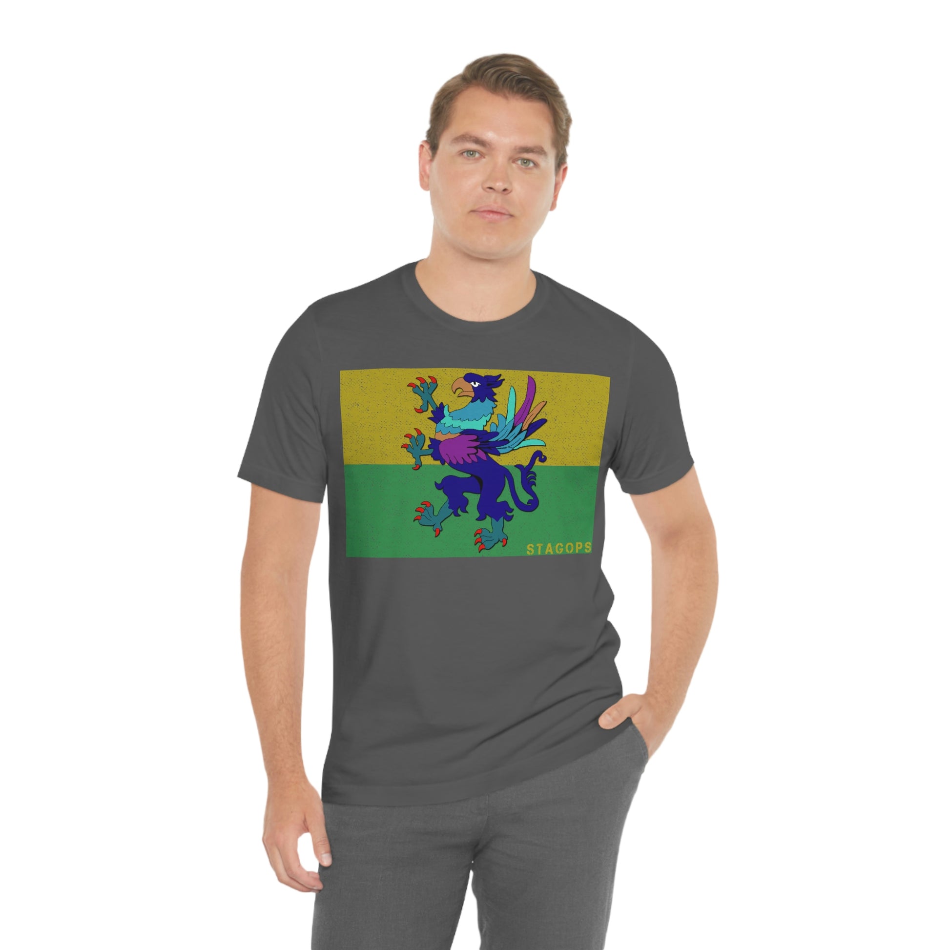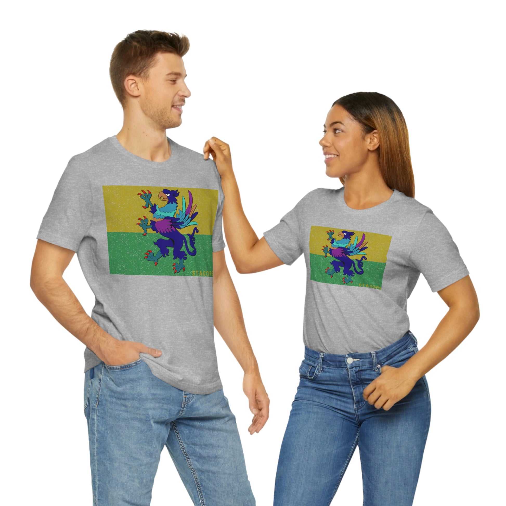 Whether you are committed to defending ancient cultures and ways displaced by colonists, or loyal to the Colonies that modernized the nation of San Petheo, do it in style with this comfy San Petheo flag tee- available in both faction correct, and casual colorways.