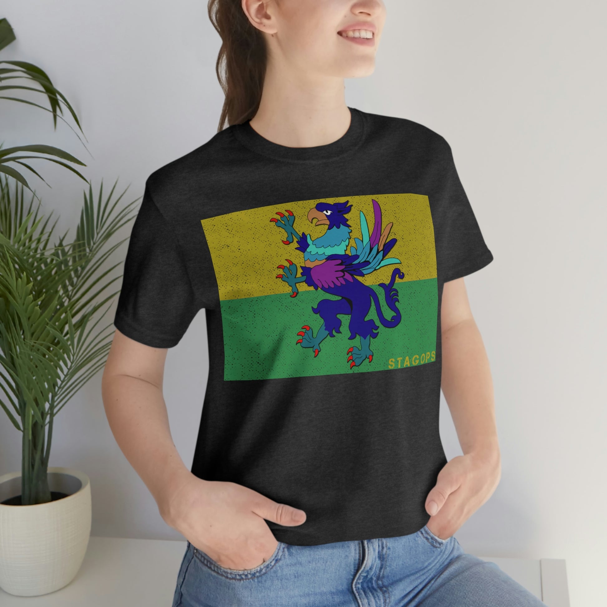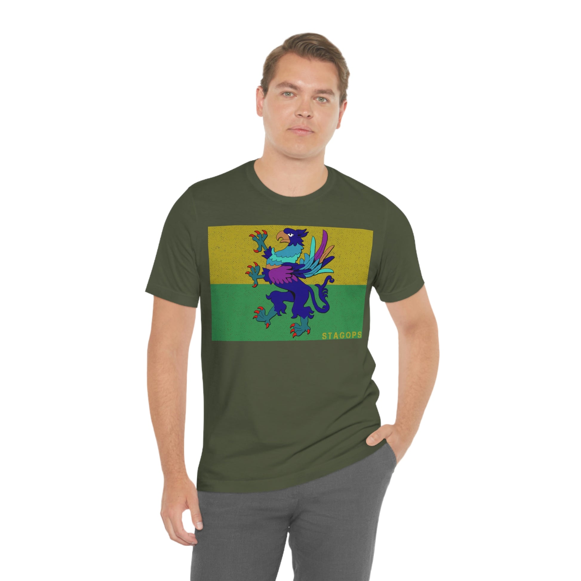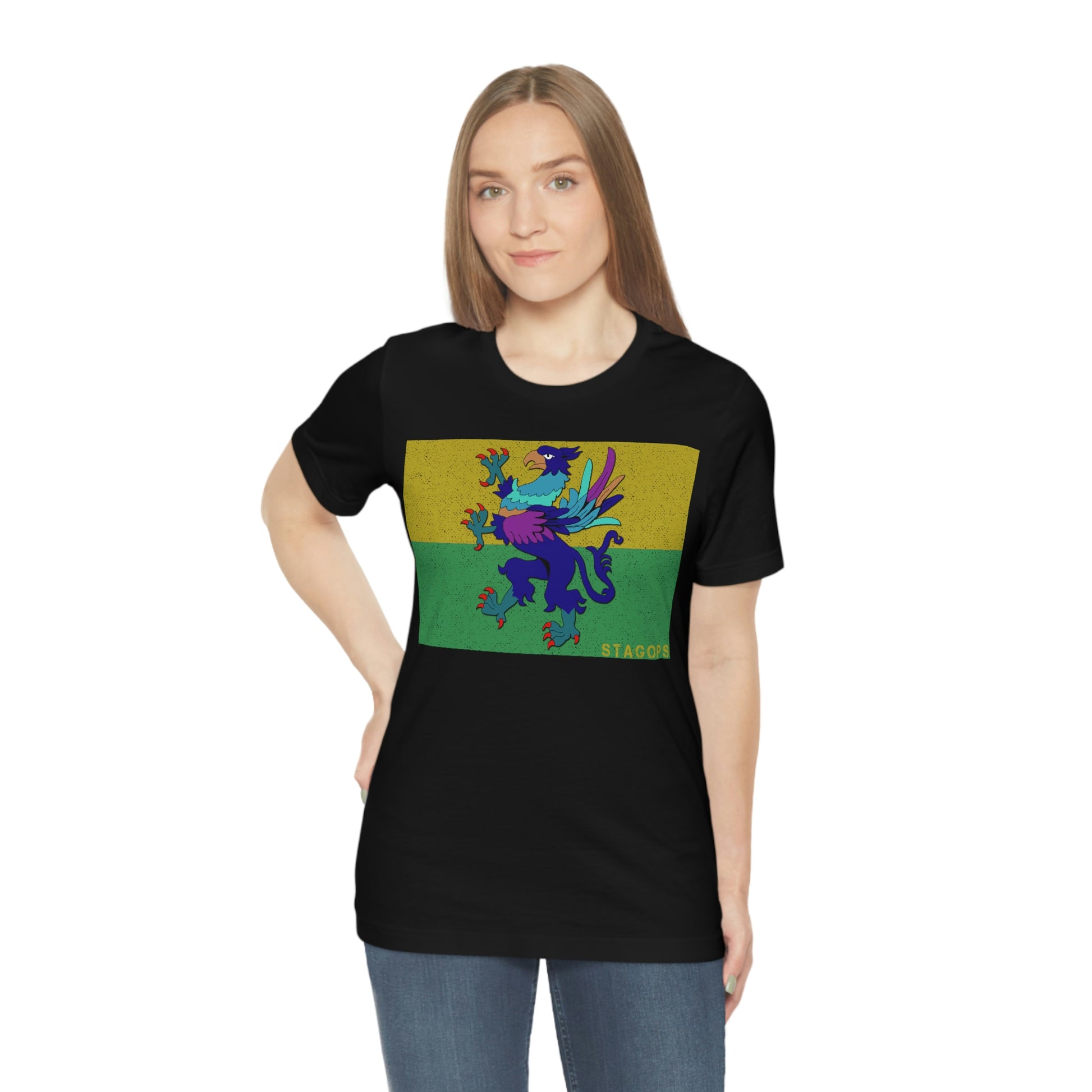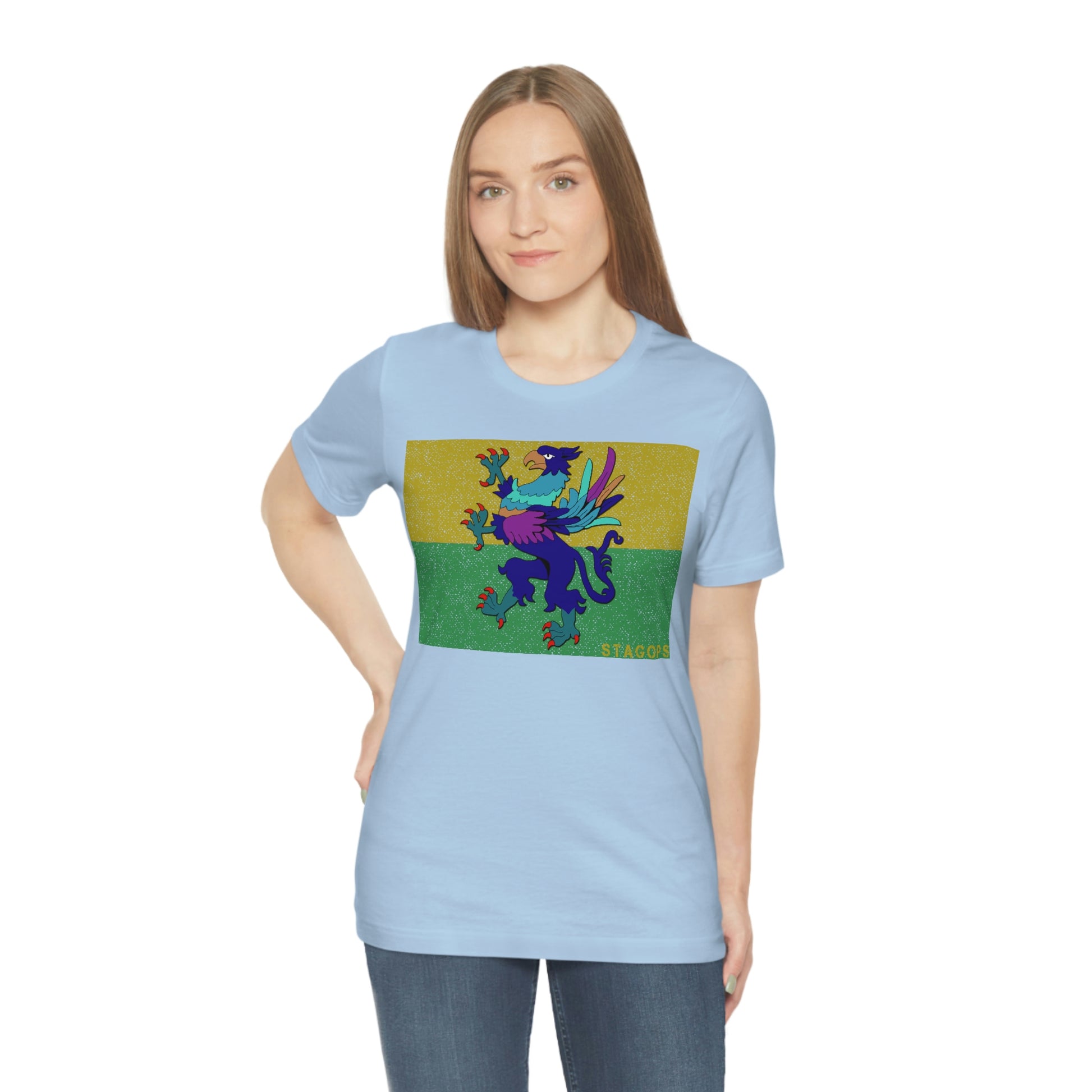 Whether you are committed to defending ancient cultures and ways displaced by colonists, or loyal to the Colonies that modernized the nation of San Petheo, do it in style with this comfy San Petheo flag tee- available in both faction correct, and casual colorways.