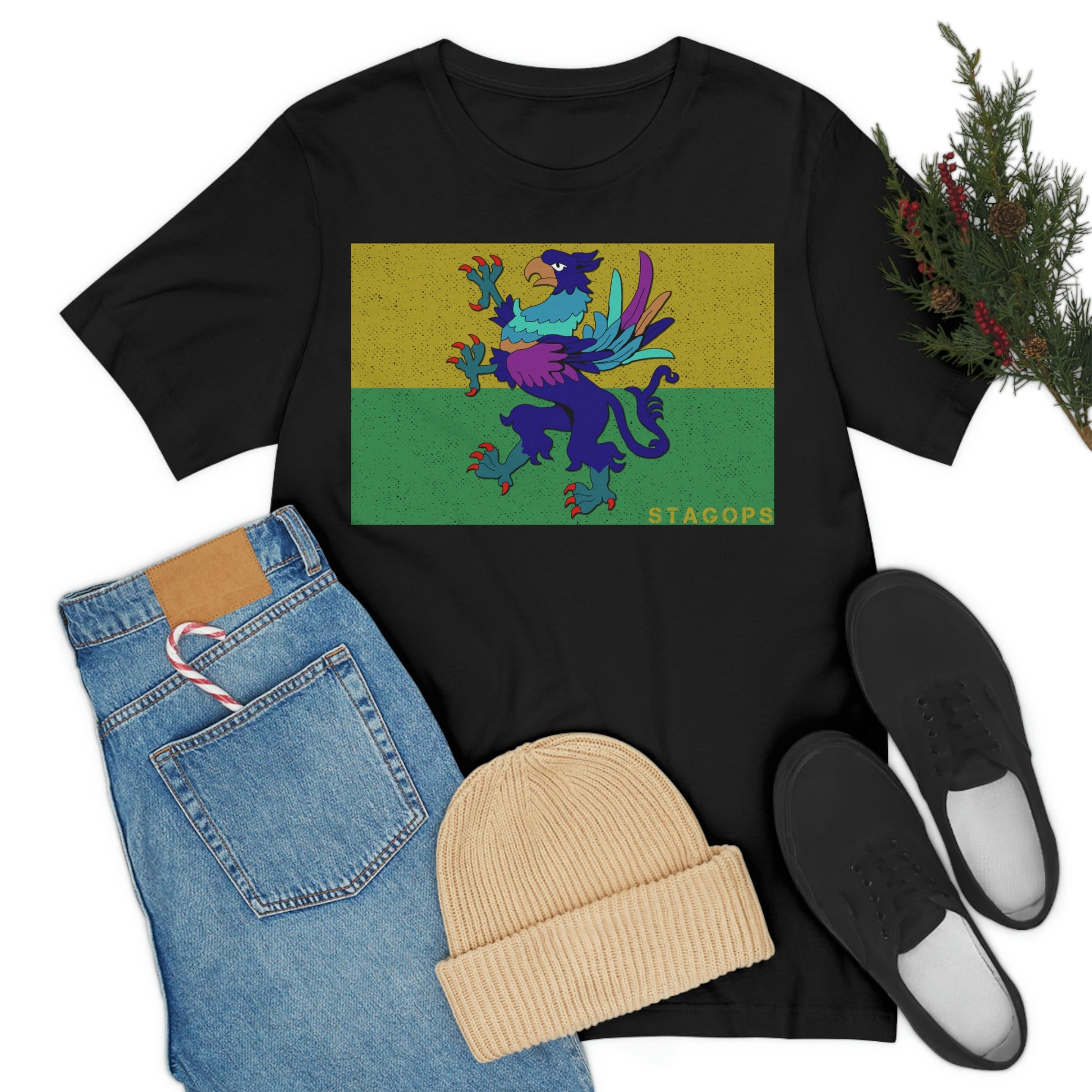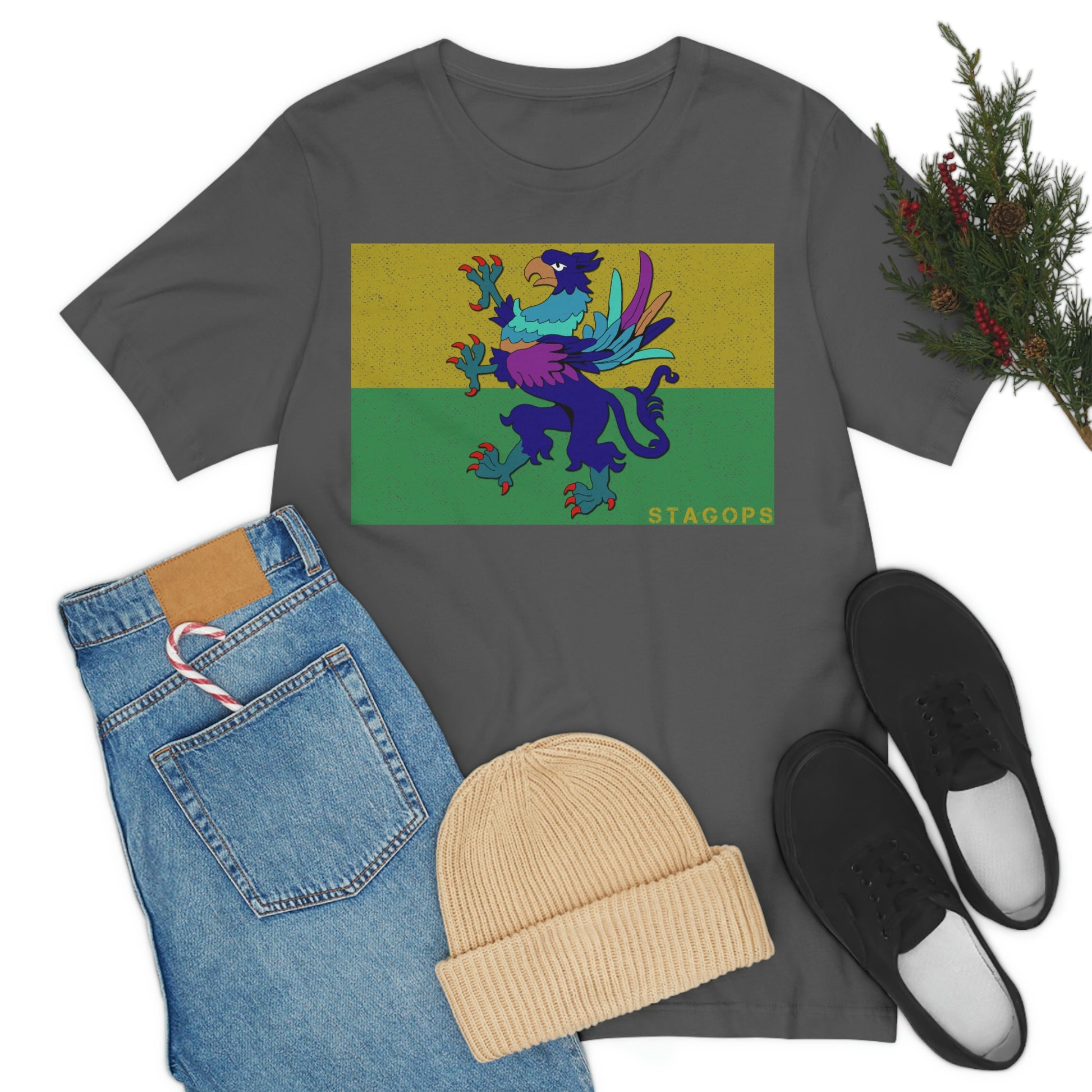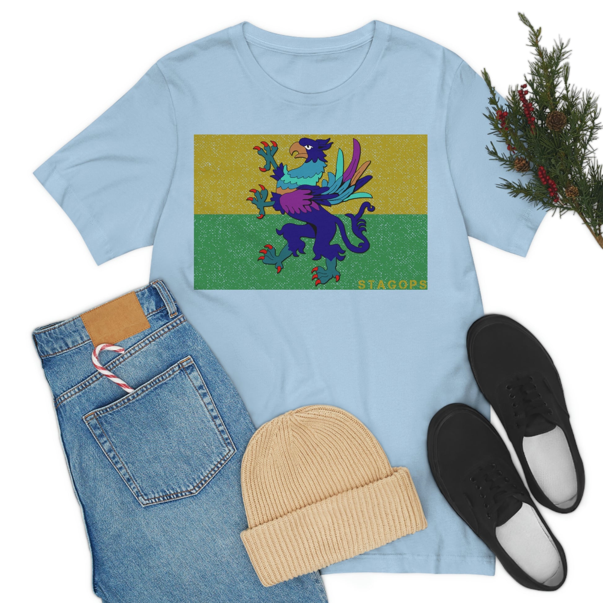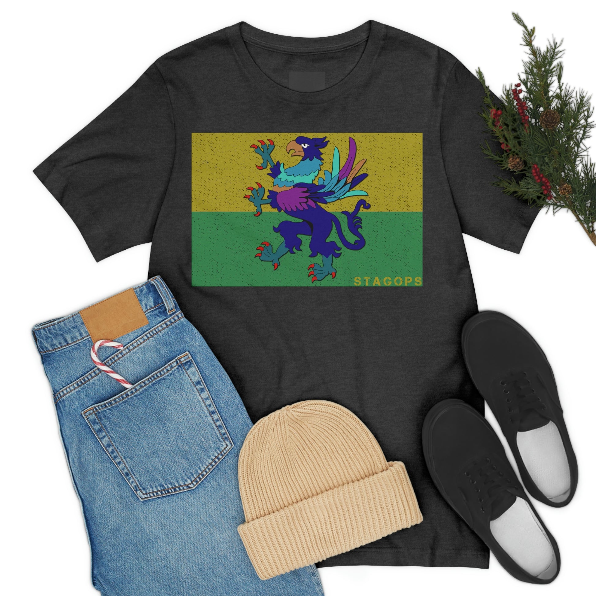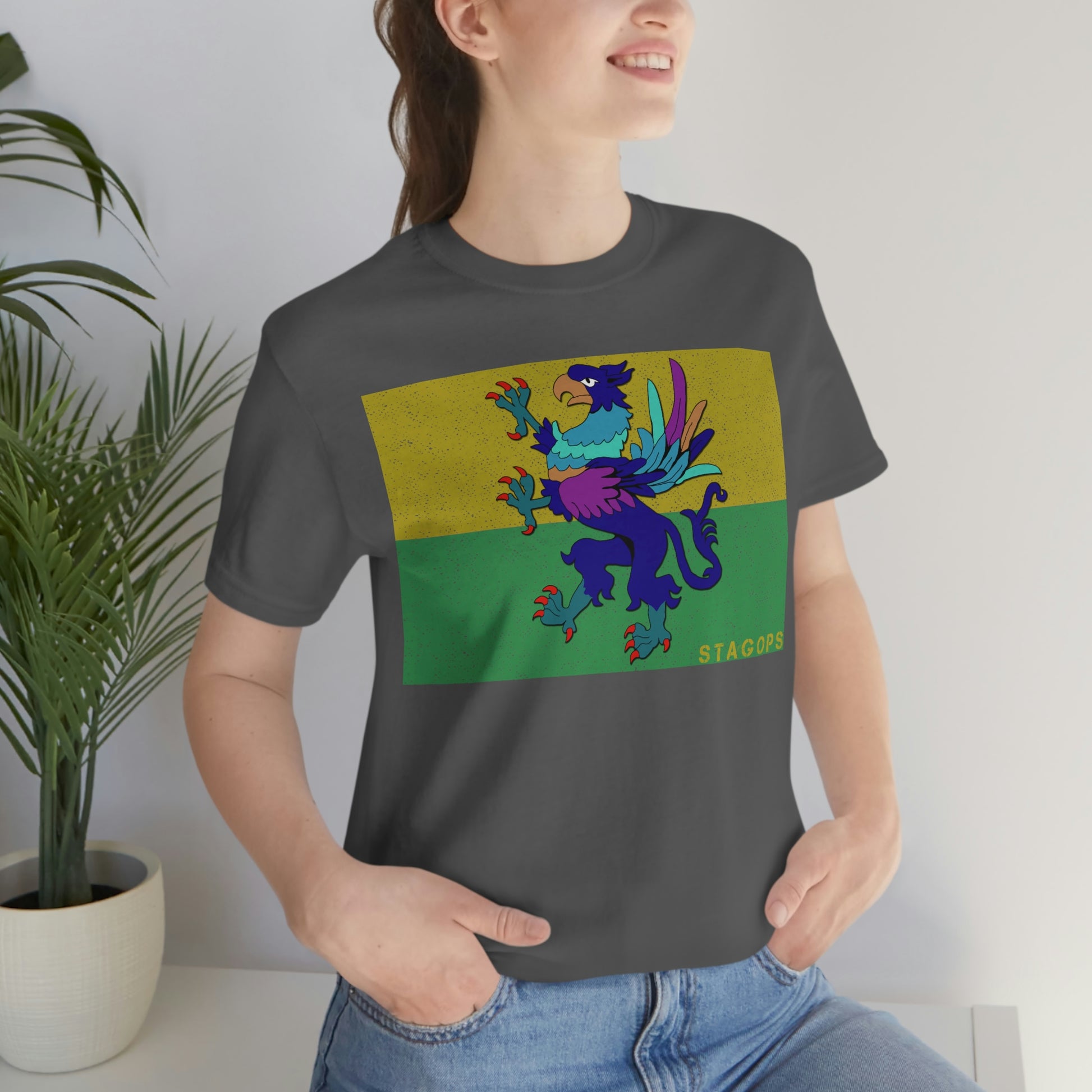 Whether you are committed to defending ancient cultures and ways displaced by colonists, or loyal to the Colonies that modernized the nation of San Petheo, do it in style with this comfy San Petheo flag tee- available in both faction correct, and casual colorways.