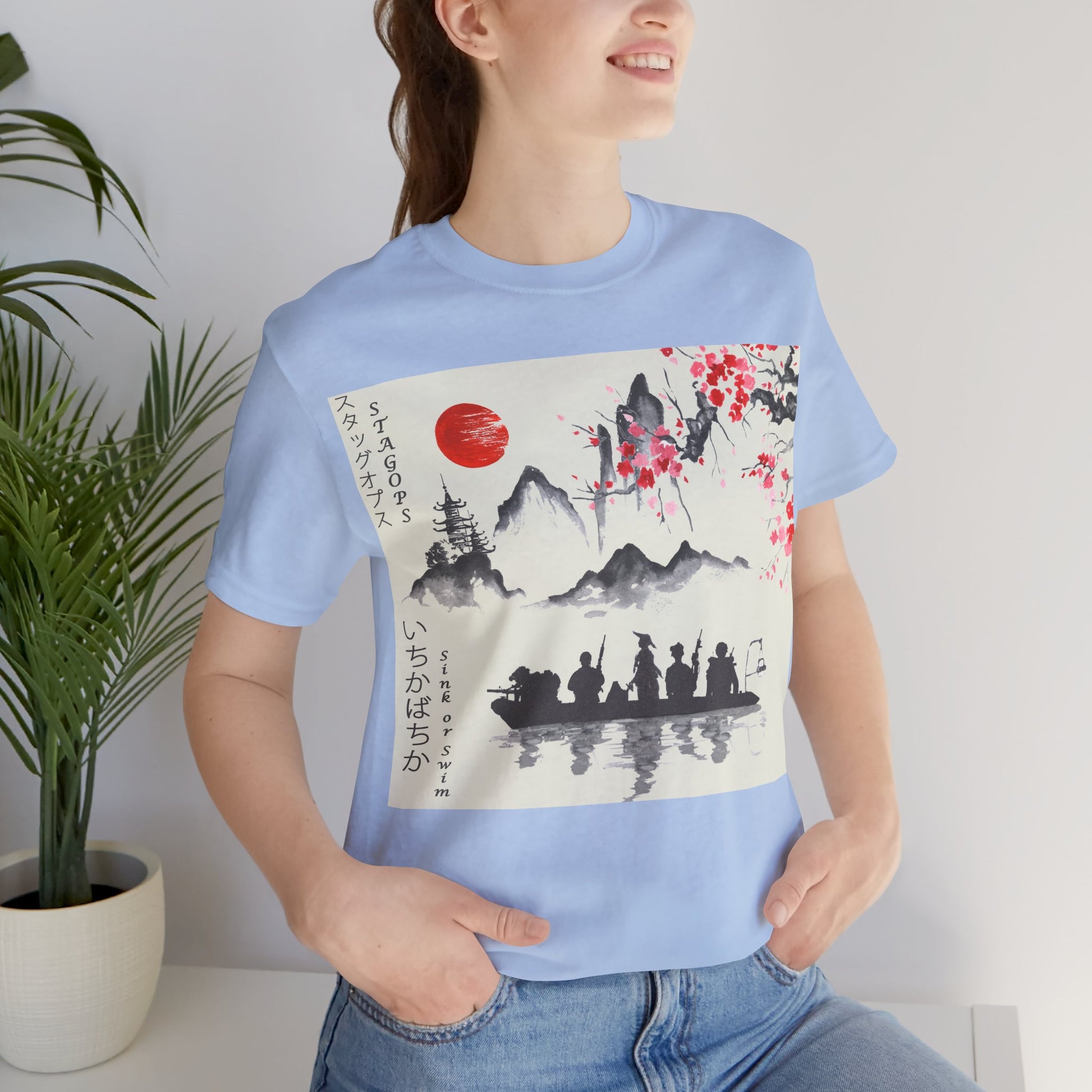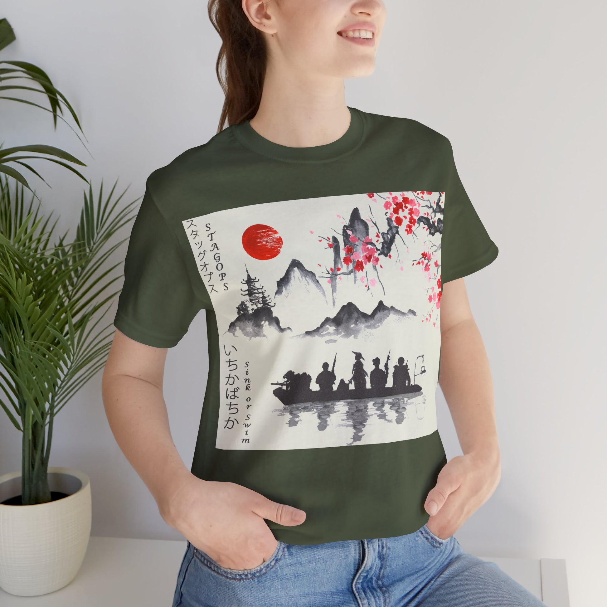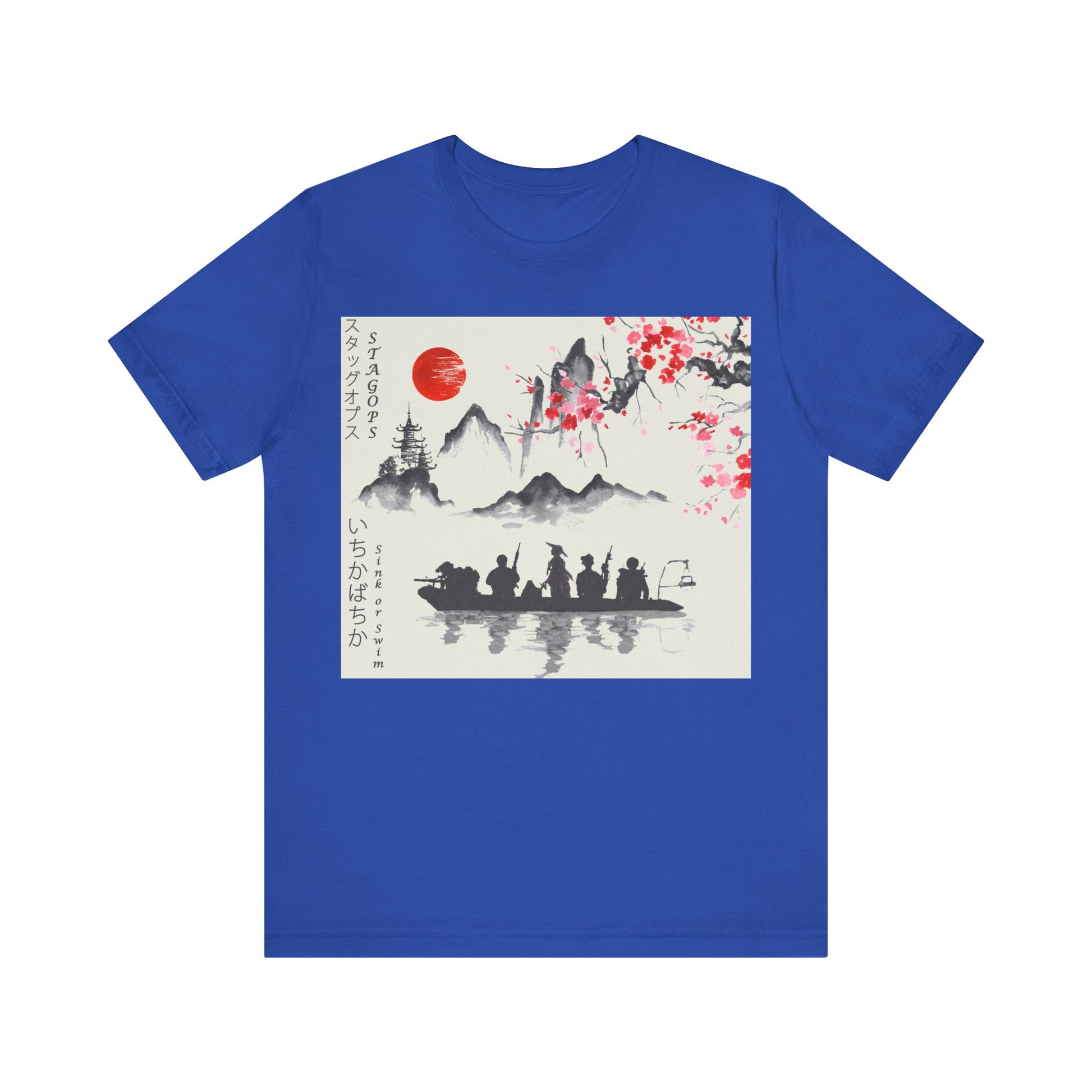 Riffing on the theme of Stagops 2023 events, and the Midsummer Nightmare boat insertion missions ("Sink or Swim")- help tap into your inner samurai in this comfy tee- available in both faction correct, and casual colorways.