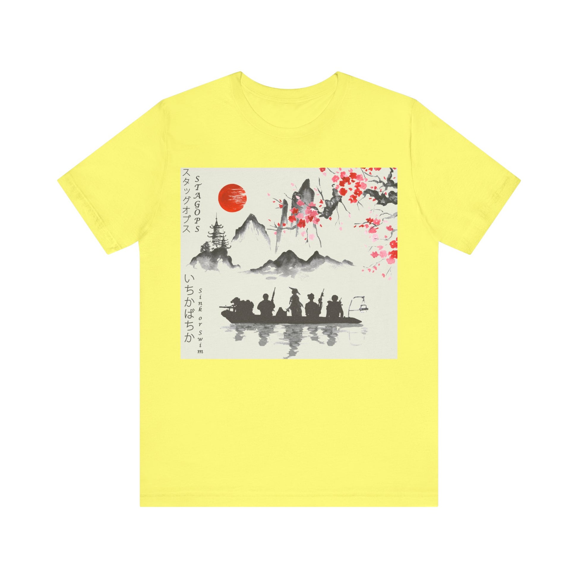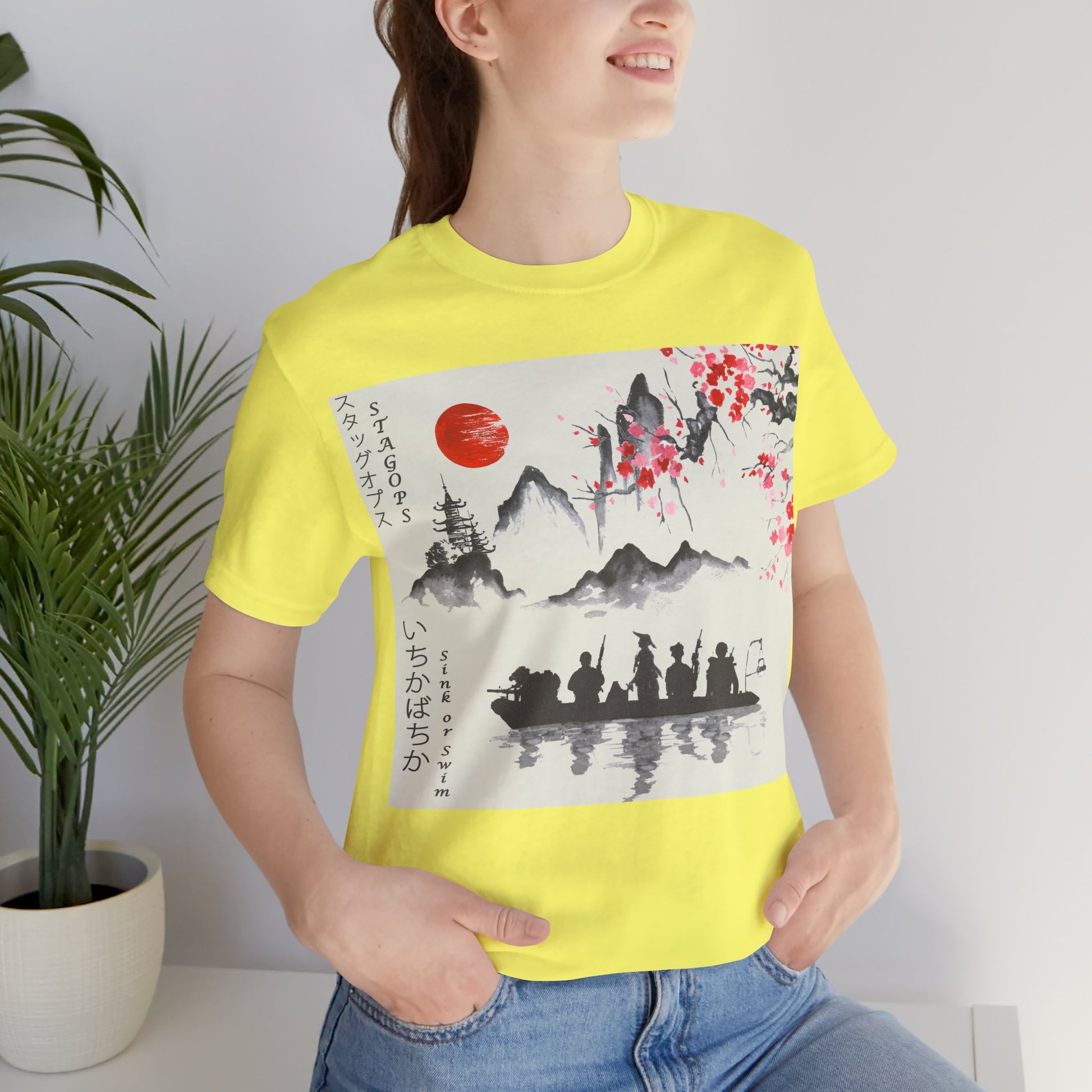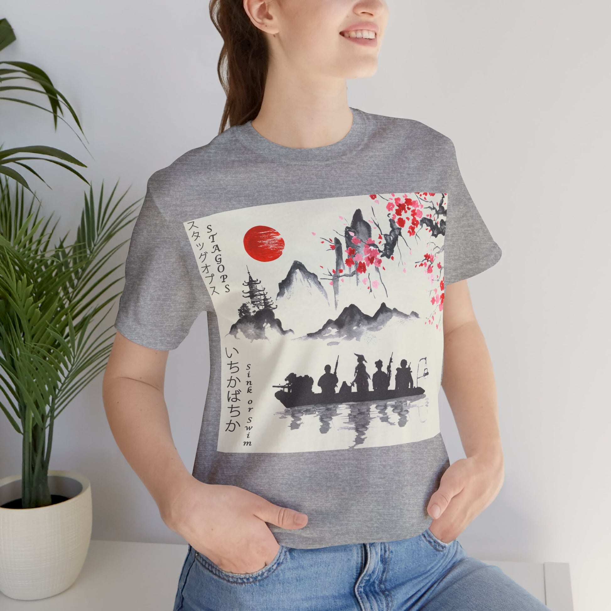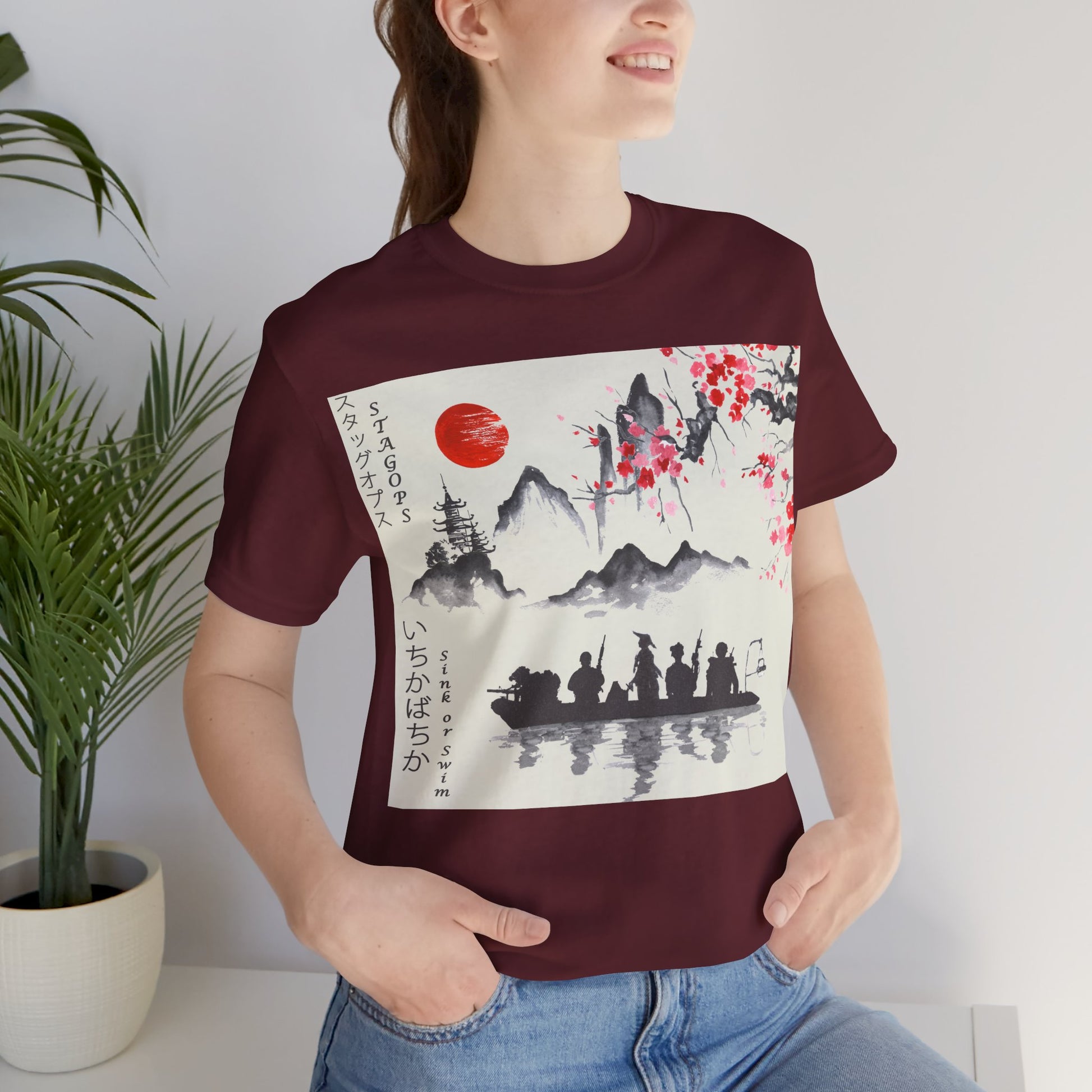 Riffing on the theme of Stagops 2023 events, and the Midsummer Nightmare boat insertion missions ("Sink or Swim")- help tap into your inner samurai in this comfy tee- available in both faction correct, and casual colorways.