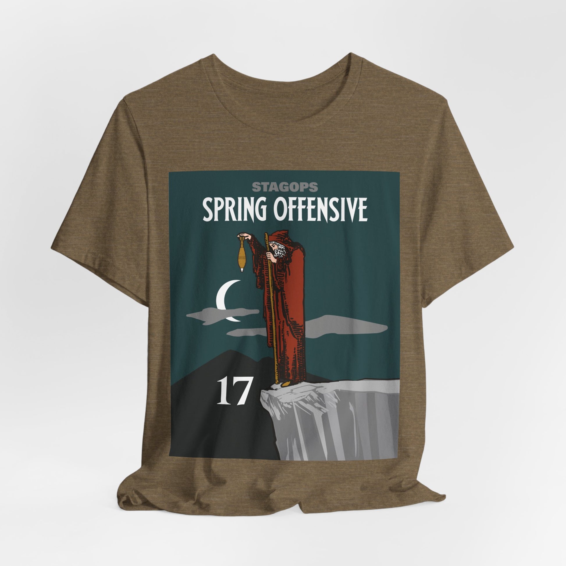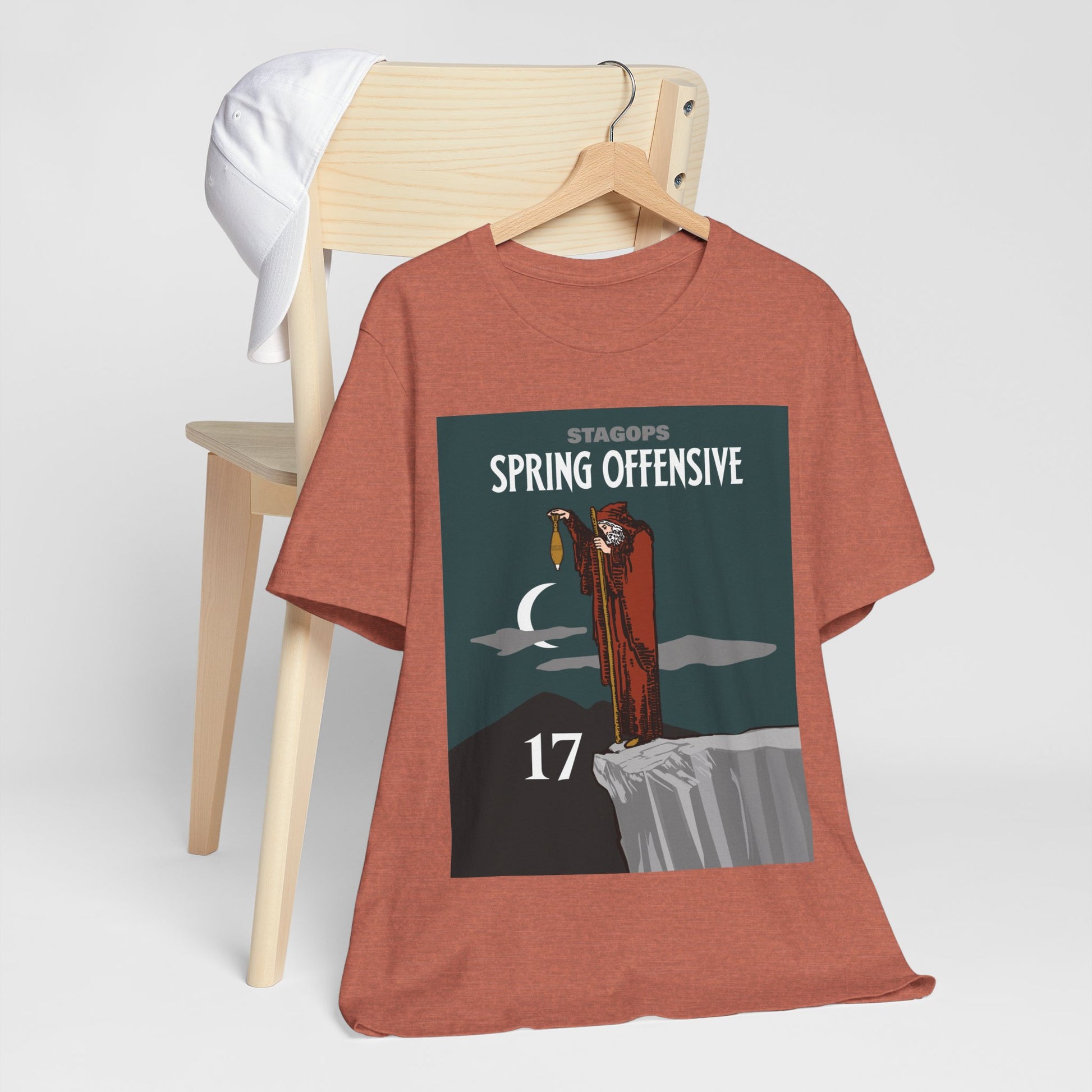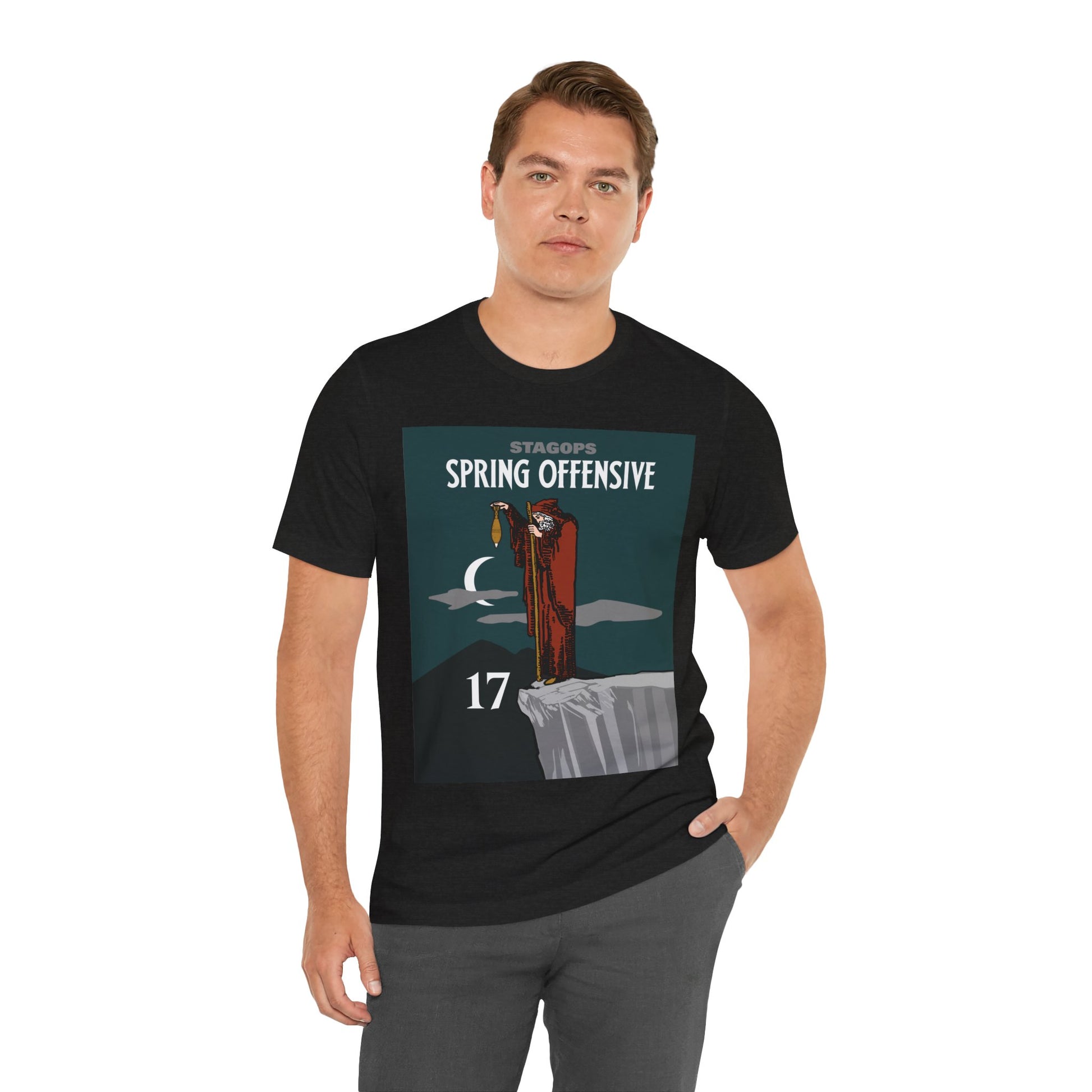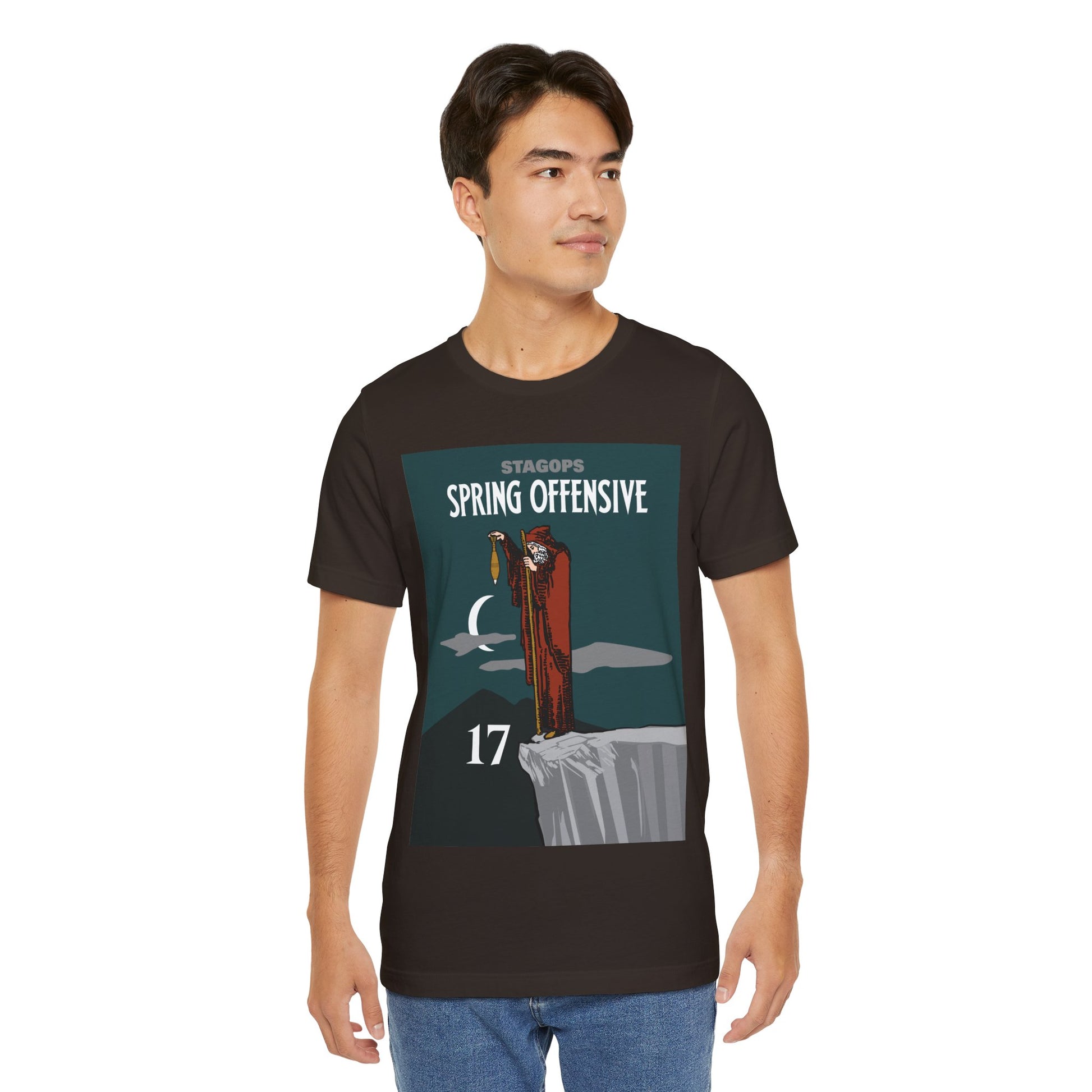 This simple comfortable tee is available in both faction-uniform and casual colorways for your game day, range day, or just everyday wear- slap it on before going to the local fooddrinkery after a game, or just to feel a clean shirt after a long day at the range. Featuring Rad as hell design by local legend, Will "SACSLYM" Belknap!