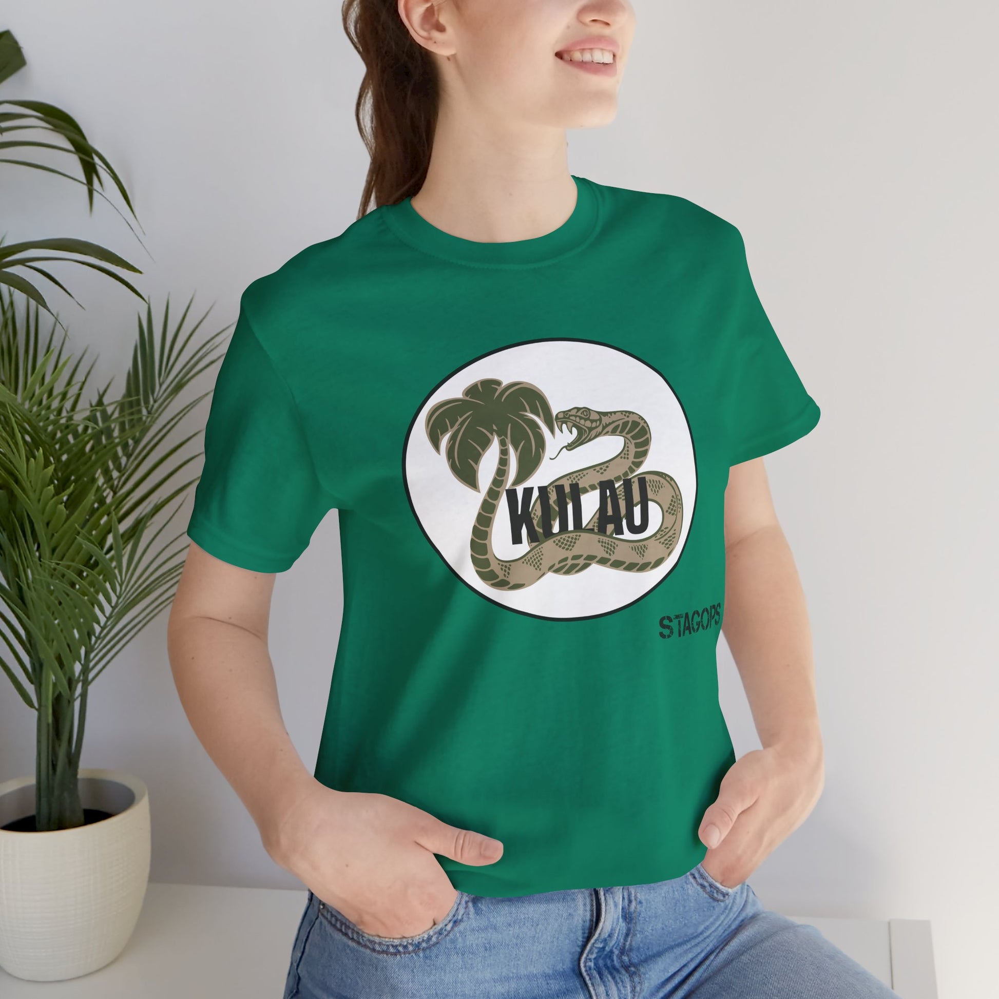 An homage to the small island nation of KULAU, now in a comfy tee- available in both faction correct, and casual colorways.