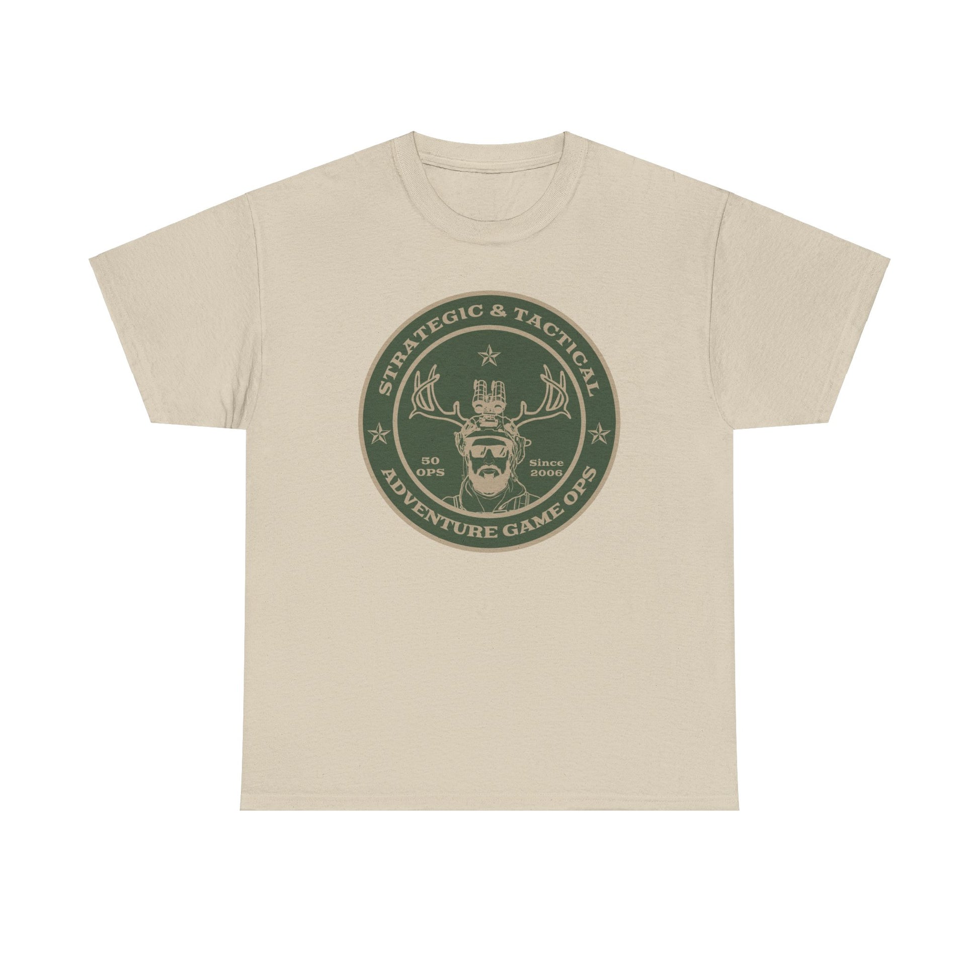 Celebrate our 50 event/17 year history in your kitchen, on the way to work, or by the lake with your favorite brew in this comfy "Camo Coffee" unisex heavy cotton tee-available in uniform and casual colors. 50 events, brought to you by Coffee, Nicotine, Alcohol, and Pain..., now in a camo subdued colorway. Original "Guru" art by Fiona Marques, fantastic local artist, lethal airsofter, and Green Beans member!