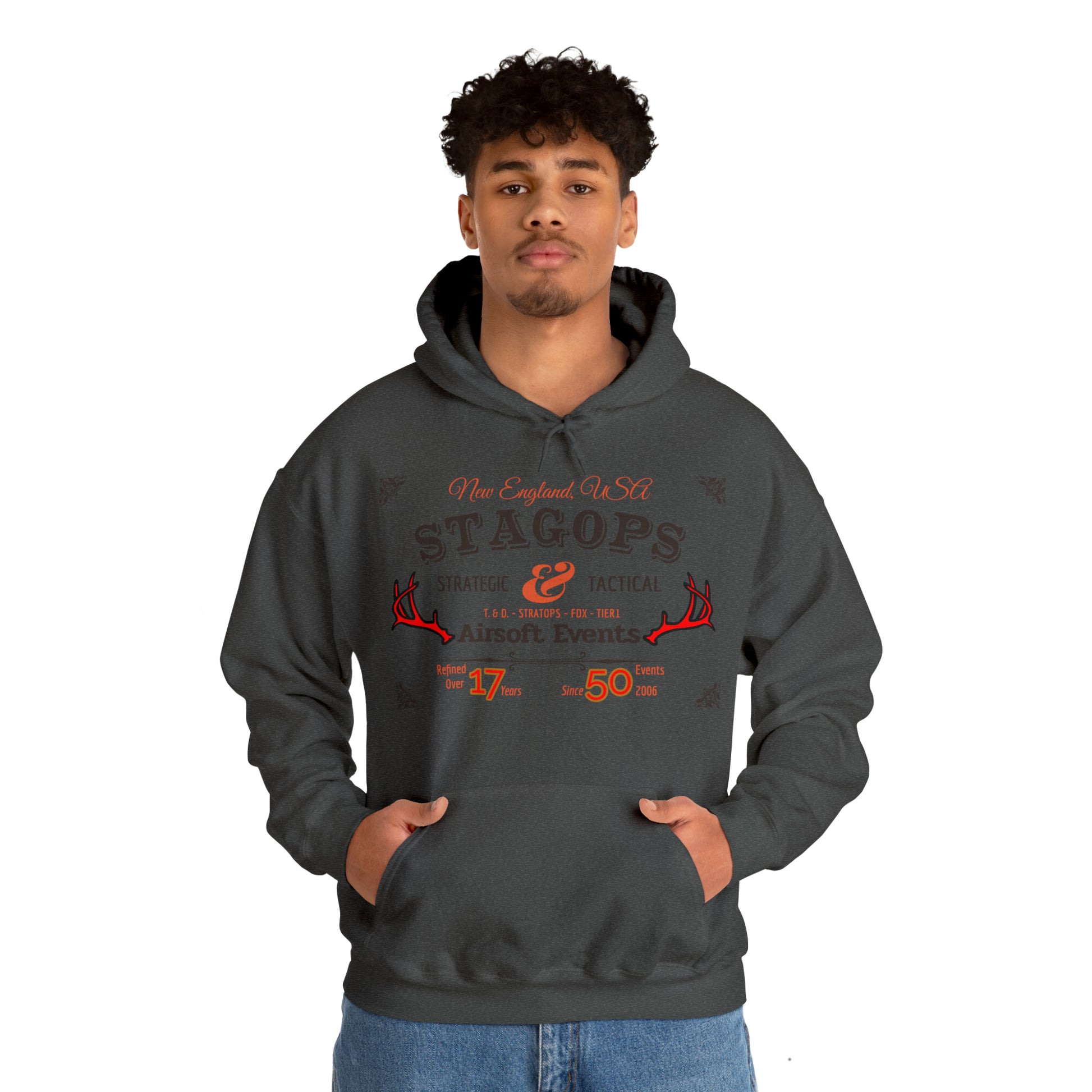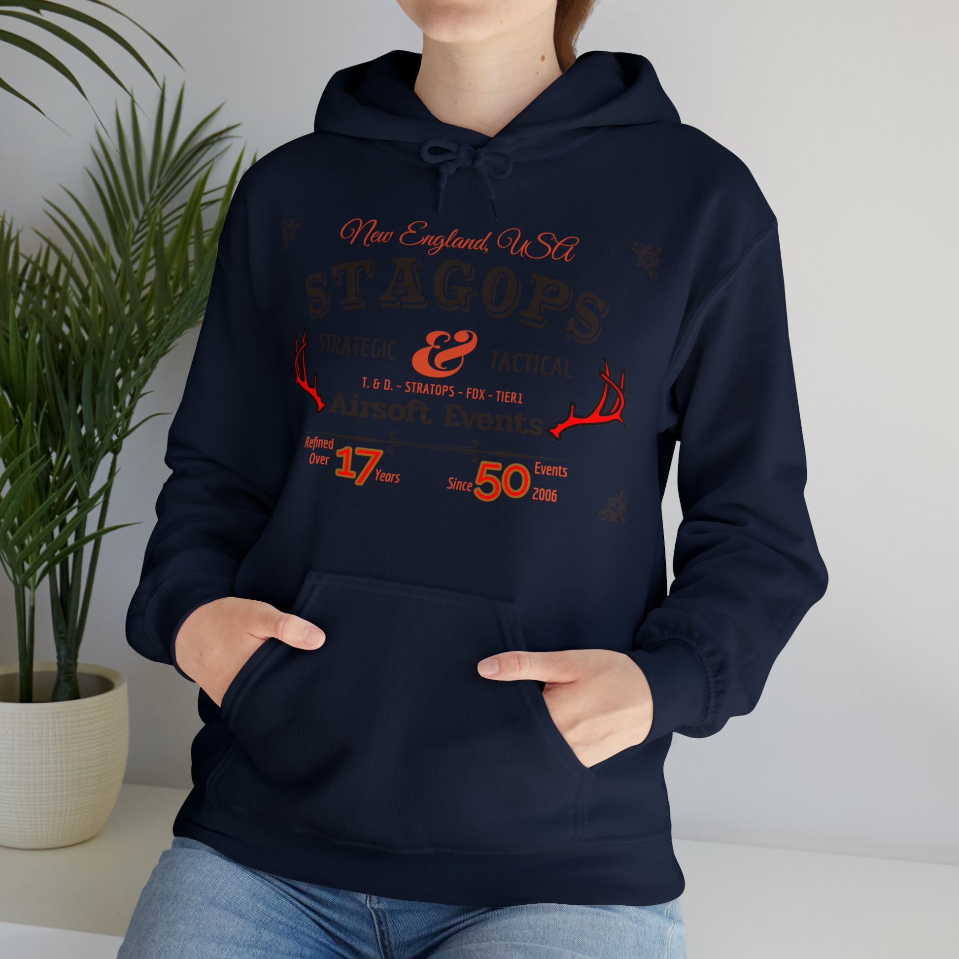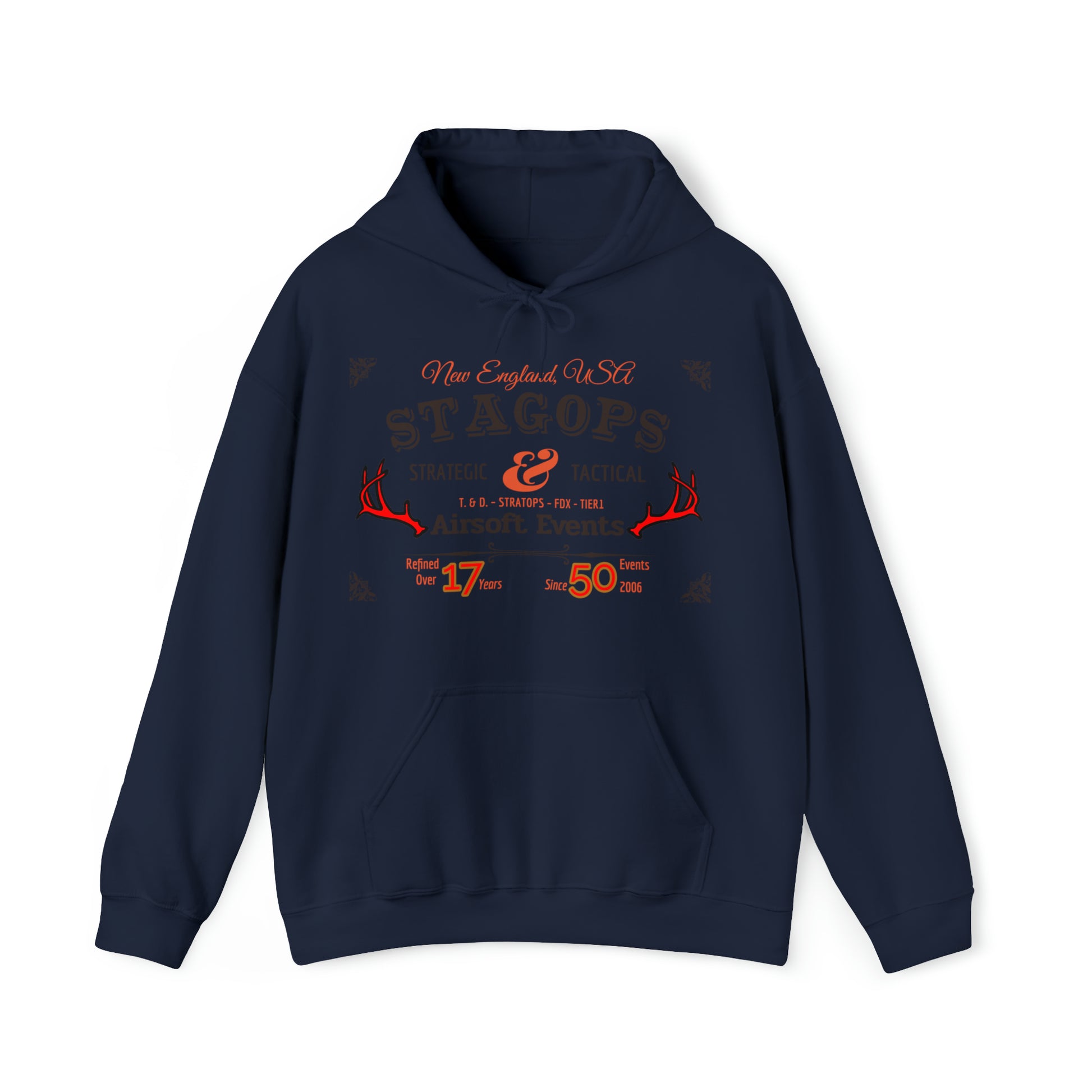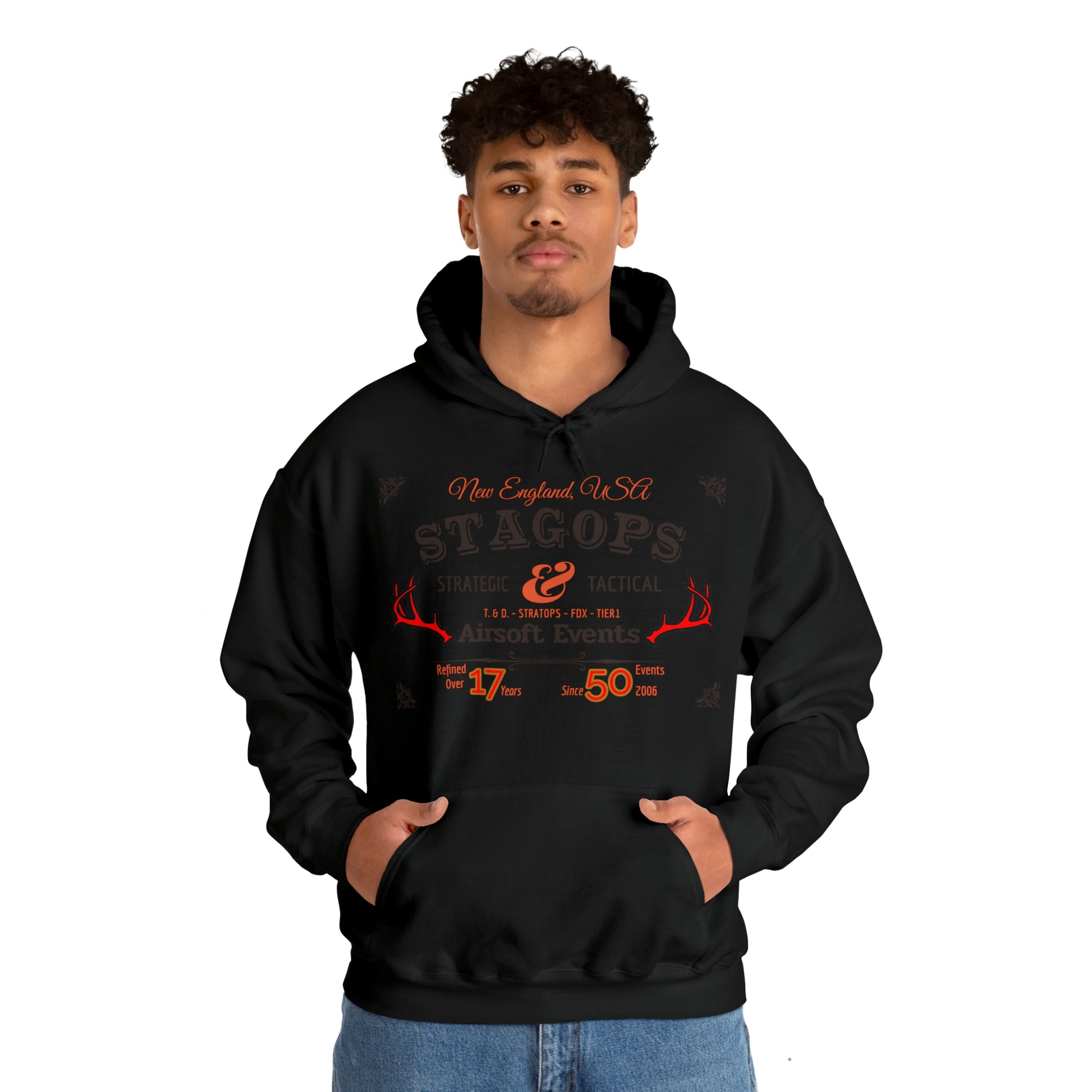 Celebrate our 50 event/17 year history by the fire with an aged spirit and this comfy "Scotch Label" hoodie- available in faction uniform and casual colorways